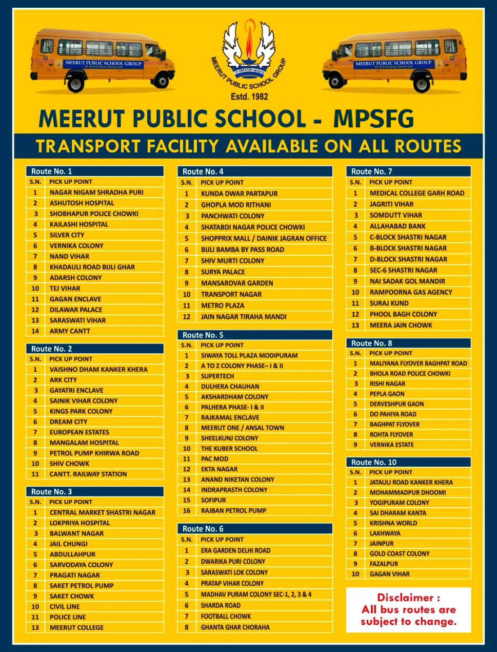 | 10 | TRANSPORT NAGAR | 1700 | 6:50 AM |