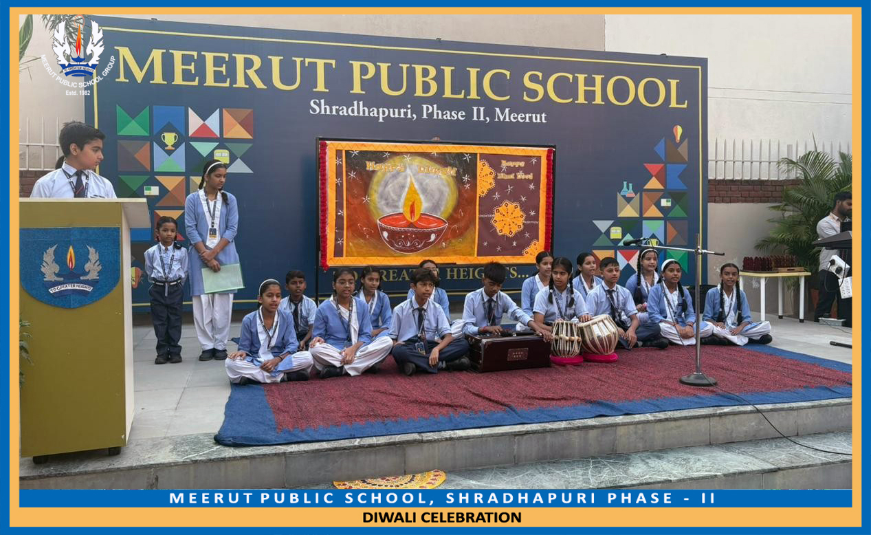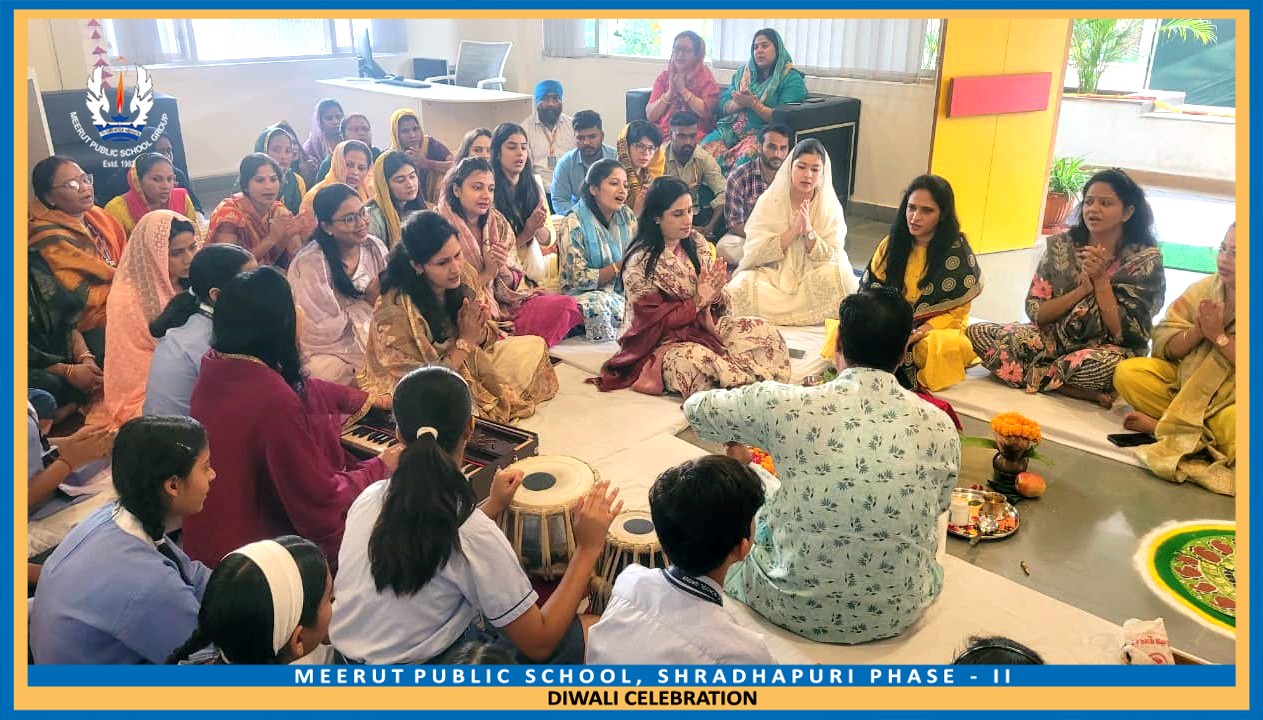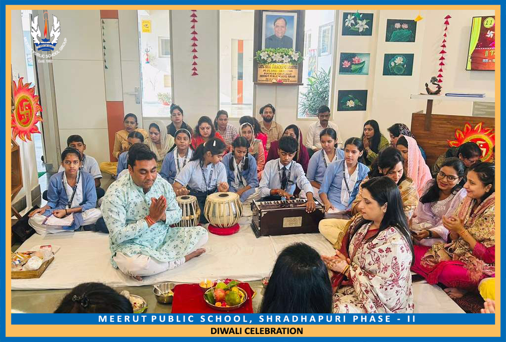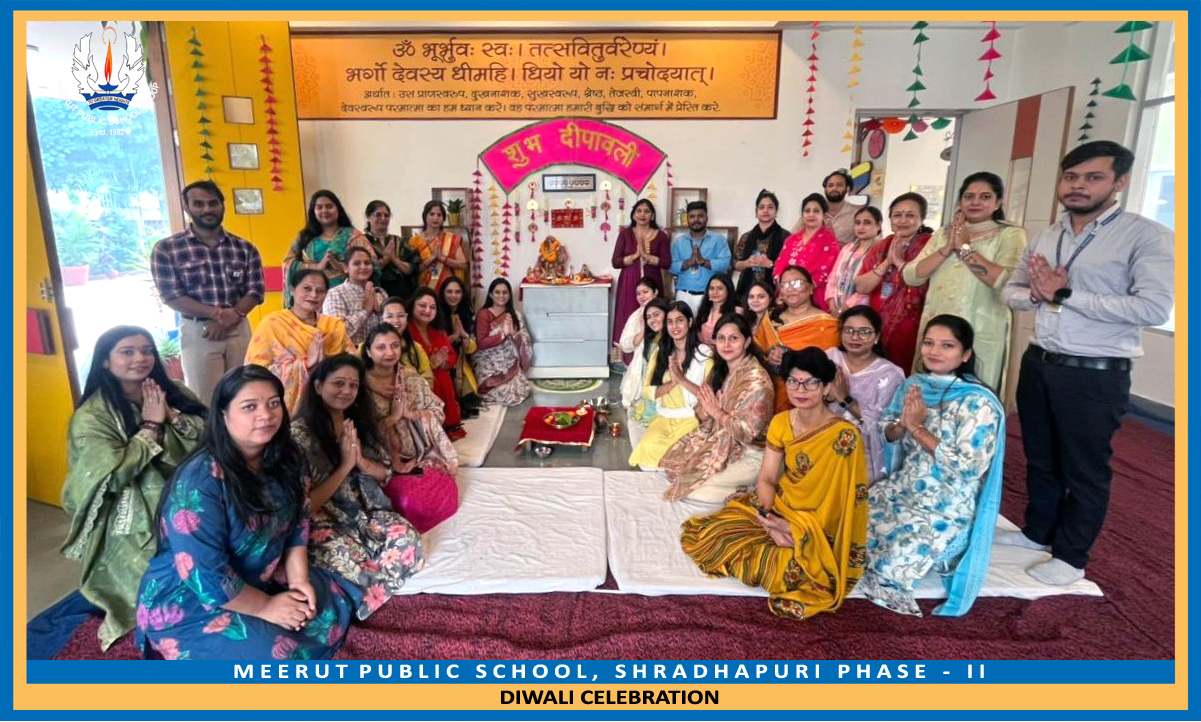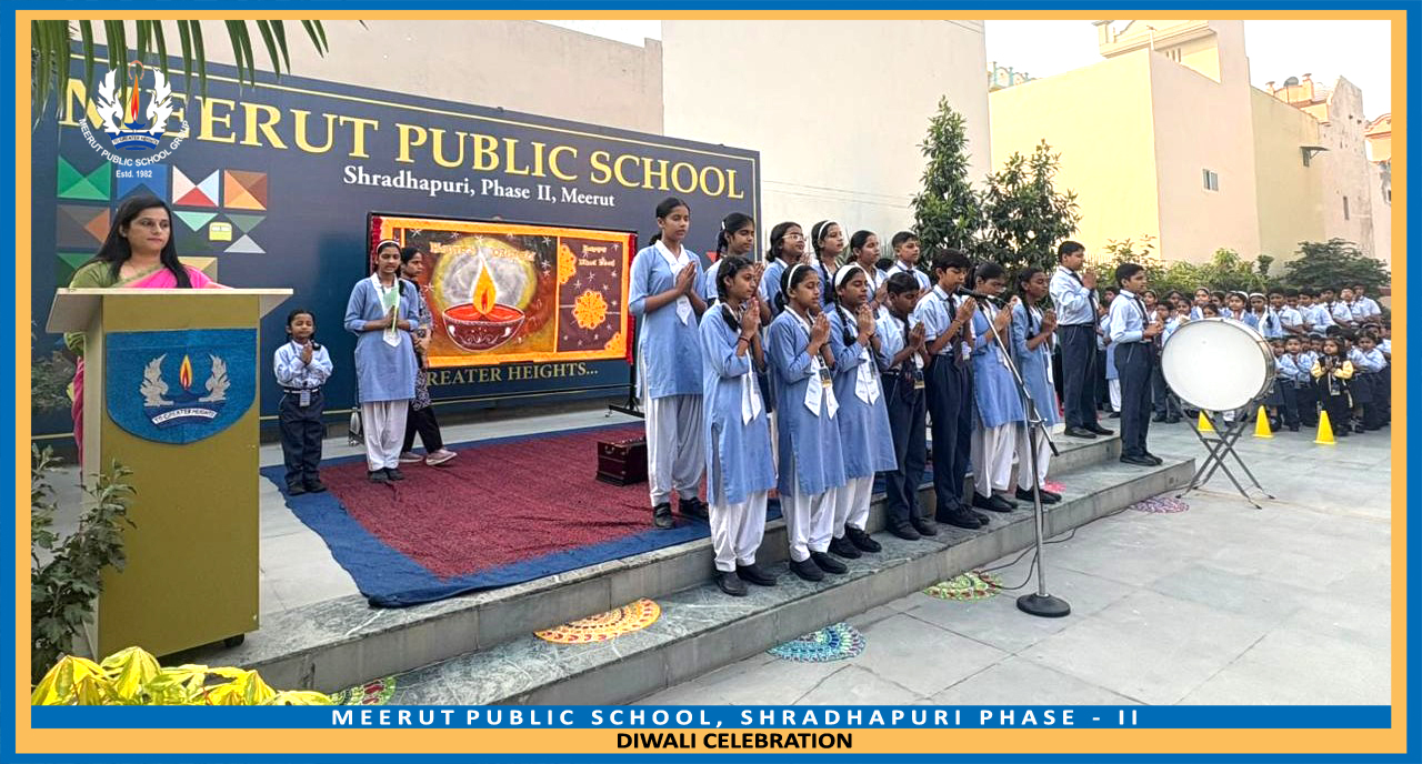 Diwali Celebration at Meerut Public School, Shradhapuri Phase-II The festival of lights illuminated the campus of MPS, Shradhapuri Phase-II with joy, devotion, and togetherness. The celebration began with a special assembly, where students eloquently shared the significance of Diwali and its timeless message — the triumph of light over darkness, good over evil, and knowledge over ignorance. Adding a touch of creativity and compassion, children crafted vibrant diyas and donated them to the underprivileged, spreading the true essence of the festival -sharing, caring and kindness. The highlight of the celebration was the special Diwali Pooja, where the resonating chants of "Jai Shree Ram" filled the air with divine energy, creating an atmosphere of peace, positivity and festivity. The day beautifully reflected the spirit of Diwali - a festival that kindles not just lamps, but hearts with love, gratitude, and joy.