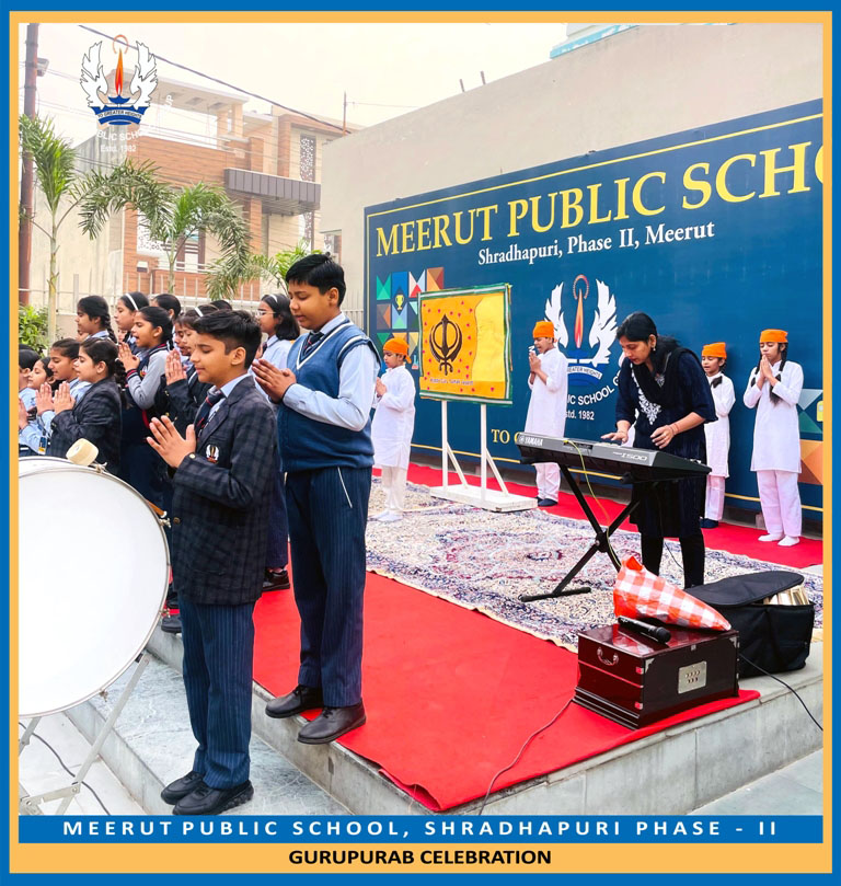 With hearts filled with devotion and gratitude, the Meerut Public School, Shardhapuri Phase-II family came together to celebrate the birth anniversary of Guru Nanak Dev Ji. The morning assembly resonated with divine peace as children delivered soulful speeches highlighting the timeless teachings of Guru Nanak Dev Ji — love, humility, and service to humanity.