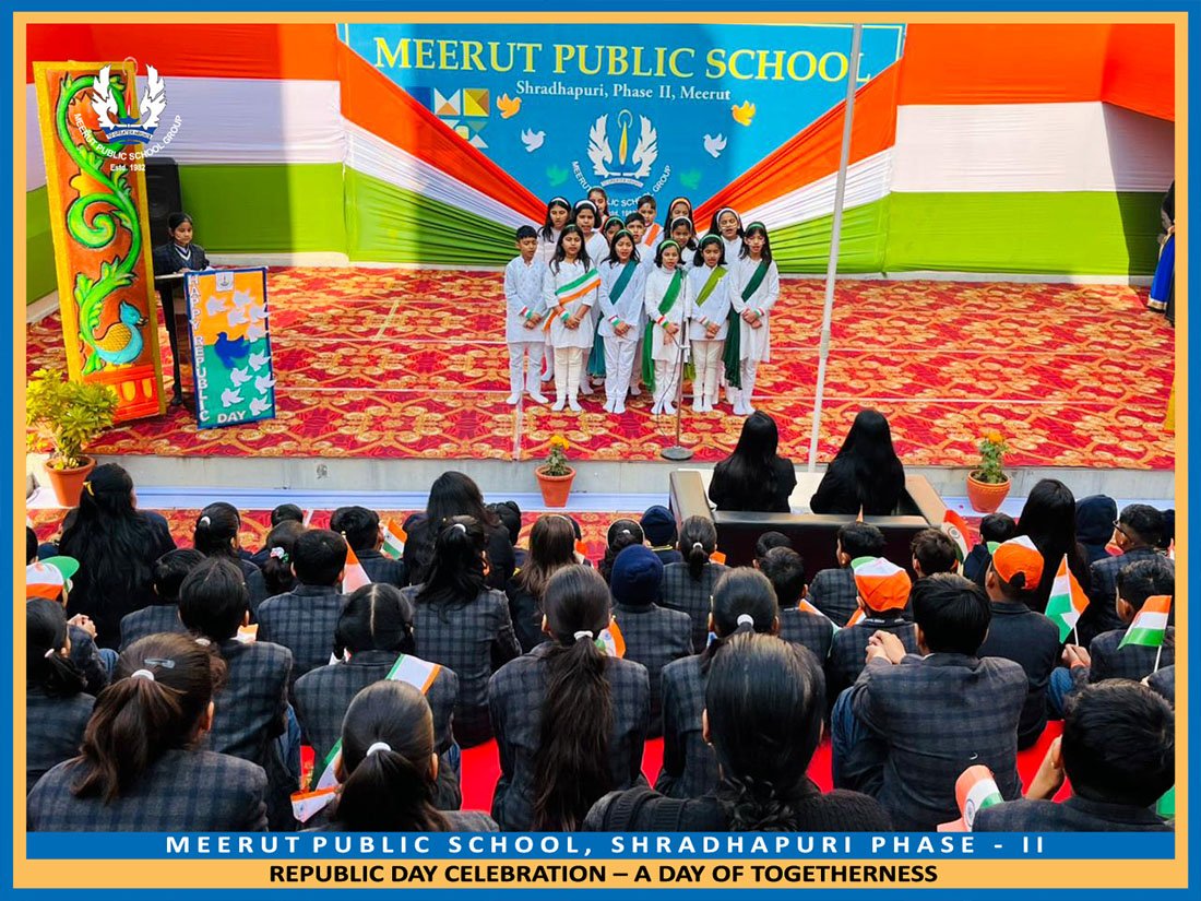 Meerut Public School, Shradhapuri-II celebrated Republic Day with great spirit, pride and a strong sense of unity. The programme featured an informative speech on the establishment of the Indian Constitution, highlighting the values and vision of our nation.