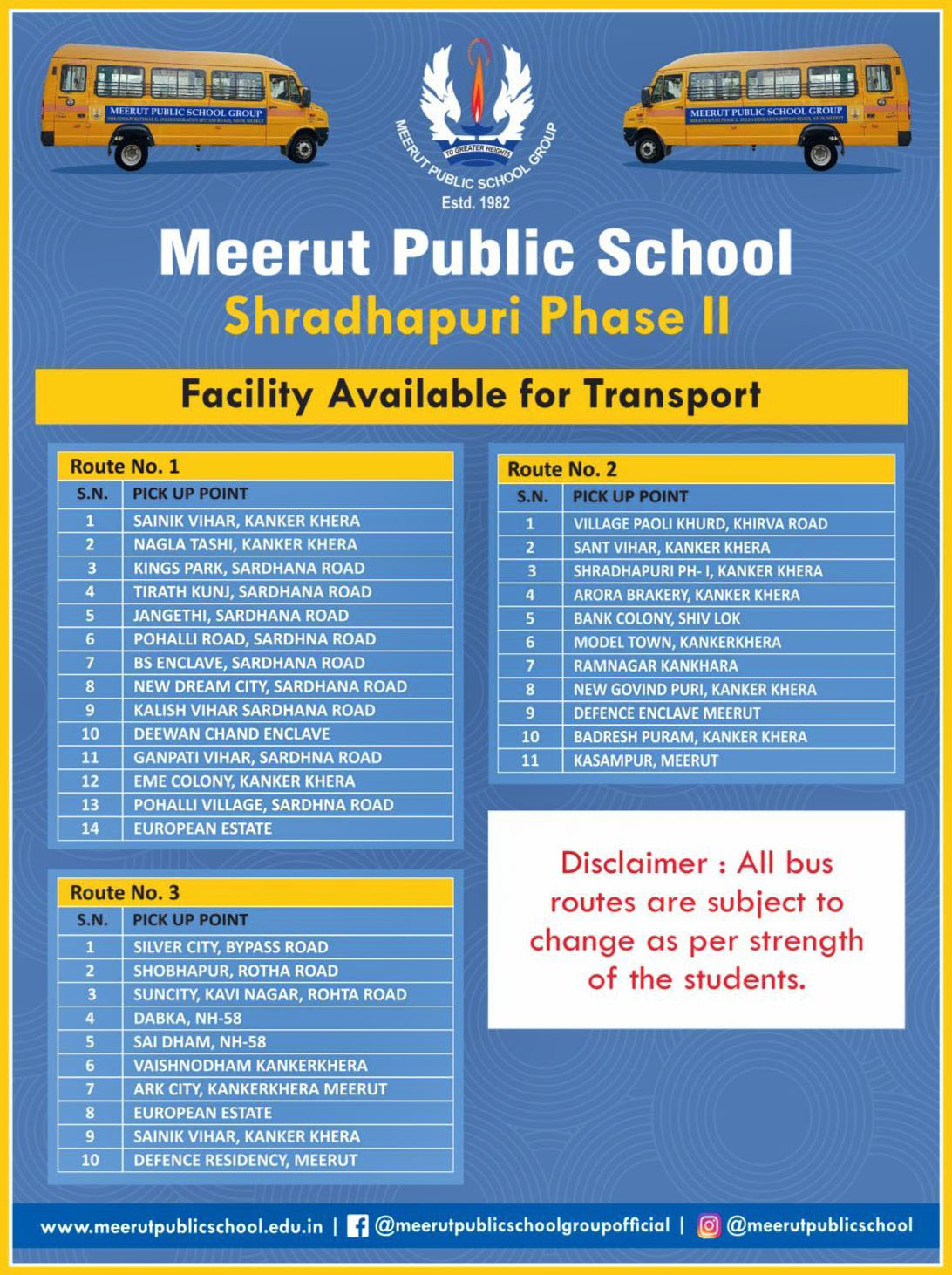 | 5 | BS ENCLAVE, SARDHANA ROAD | 6:45 AM | 1500 |