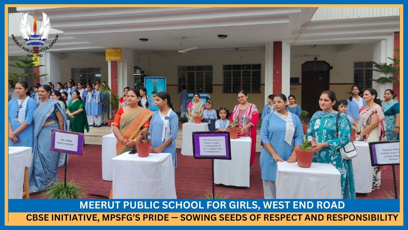 In alignment with the Central Board of Secondary Education's national-level initiative “Ek Ped Maa Ke Naam 2.0”, Meerut Public School for Girls organized a plantation drive during the morning assembly. The objective was to sensitise students to environmental responsibility while promoting strong emotional bonds with their mothers through symbolic participation.