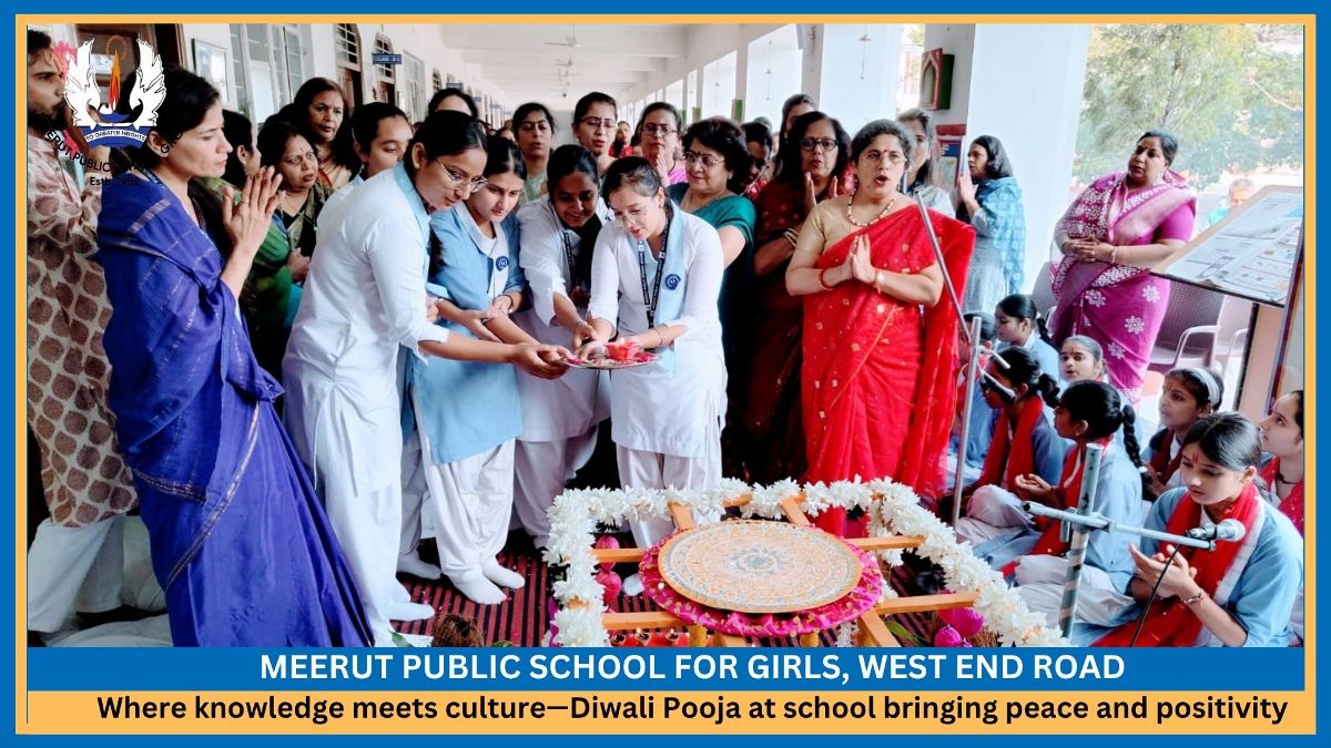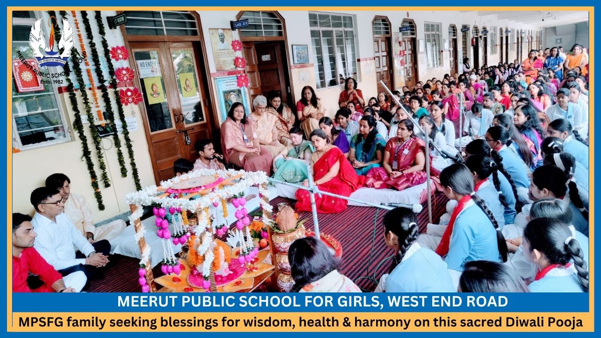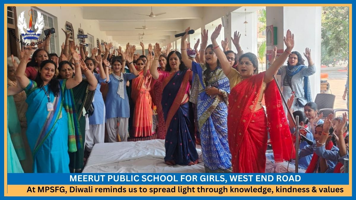 Diwali, the Festival of Lights, was celebrated with grace and spiritual fervour at Meerut Public School for Girls, creating an atmosphere of devotion, purity, and festive warmth. The ceremony began with the auspicious Lakshmi–Ganesh–Kuber Pujan, where students and staff joined in seeking divine blessings for knowledge, prosperity, and wellbeing. The school was adorned with aesthetically crafted rangolis, floral décor, and rows of diyas lit by students, symbolising enlightenment and positivity.