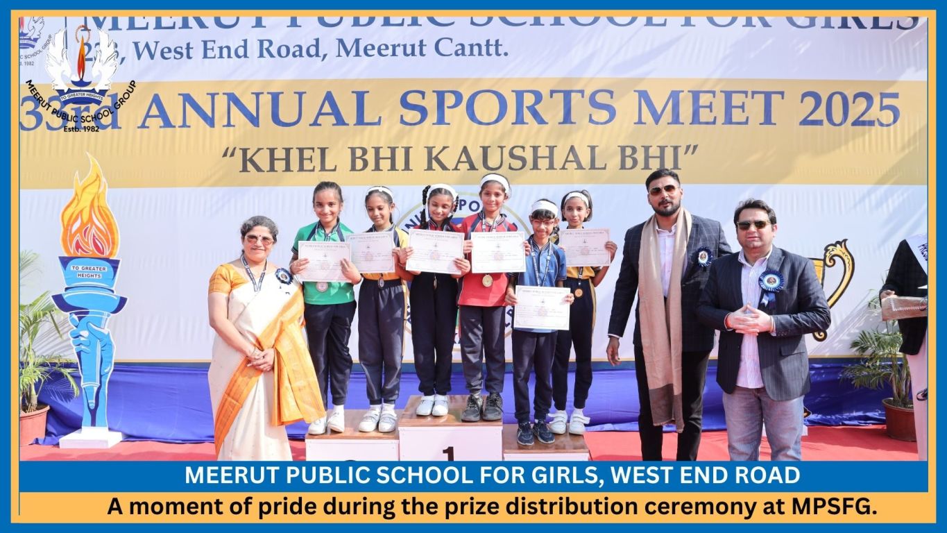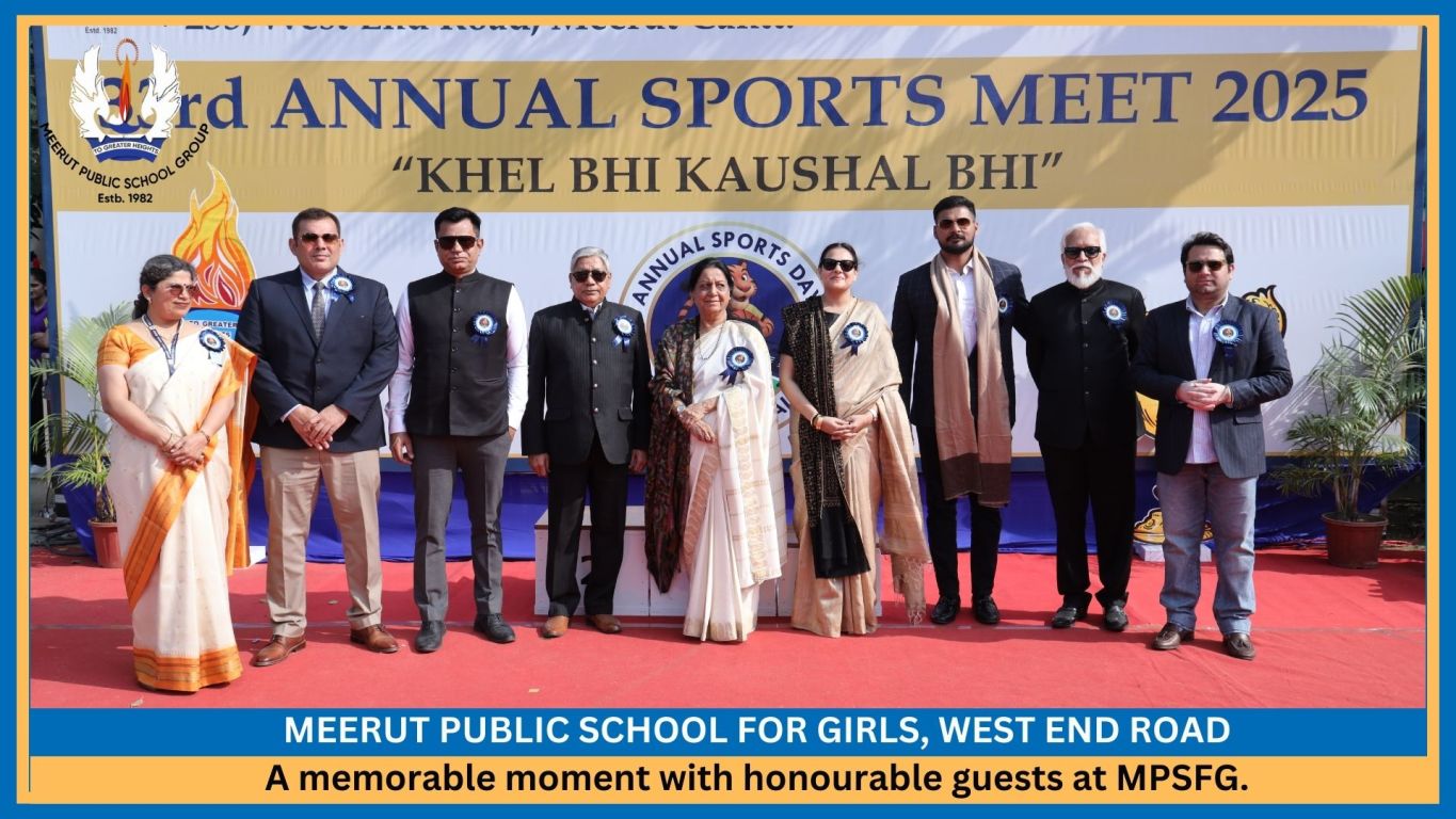 This thought came to life at Meerut Public School for Girls as the campus celebrated its Annual Sports Day 2025 under the theme "Khel Bhi, Kaushal Bhi." The occasion was graced by Chief Guest Dr. Premchand Kashyap (Former Executive Director, Sports Authority of India), along with Wing Commander Vikas Shrotriya (Retd.), Mr. Varun Ahlawat (President, Wheelchair Basketball Federation of India), Mr. Ulhas Koravi Satyanarayan (International Basketball Player), Dr. Sumit Upadhyay (ENT Specialist, Nutema Hospital) and Mr. Gyanendra Agarwal. Mrs. Kusum Shastri, Co-Founder & Vice President, MPS Group, and Managing Directors Mr. Vikramjeet Singh Shastri and Mrs. Ketki Shastri also added their presence to the celebration.