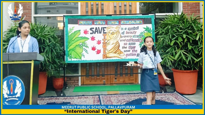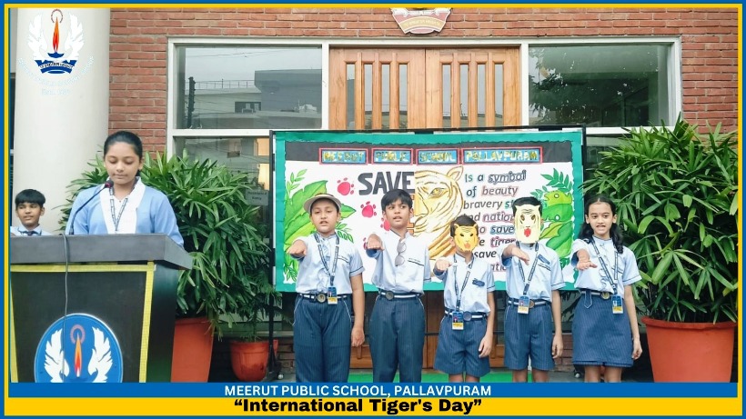On Tuesday, July 29th 2025, Meerut Public School, Pallavpuram observed International Tiger’s Day . A special assembly was conducted to raise awareness about tiger conservation. Students presented an impactful skit showcasing the importance of protecting tigers and their habitats. A pledge to protect tigers was taken by all, making the day educational, inspiring, and impactful in promoting wildlife awareness.