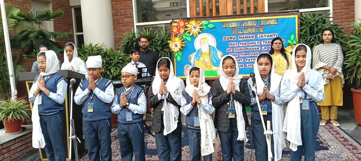 On Tuesday, 4th November, 2025, Meerut Public School, Pallavpuram conducted a special assembly to celebrate Guru Nanak Jayanti. The program began with prayers and a soulful shabad, creating an atmosphere of devotion and peace.