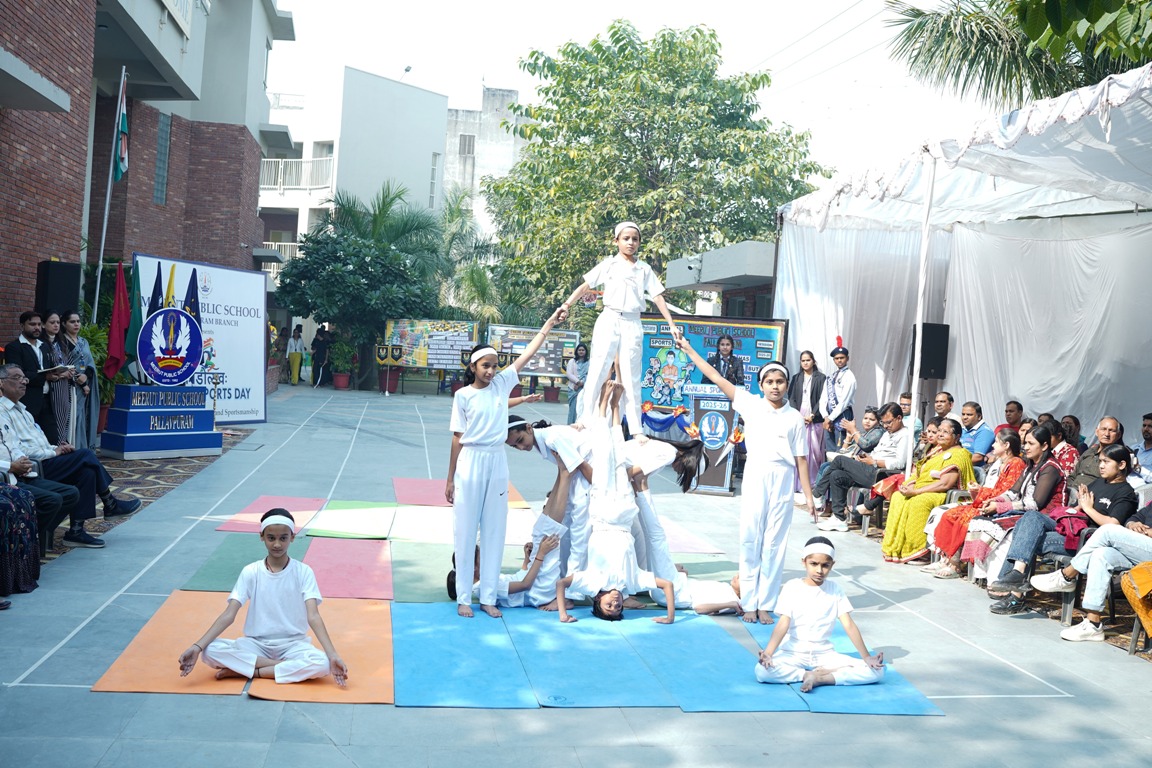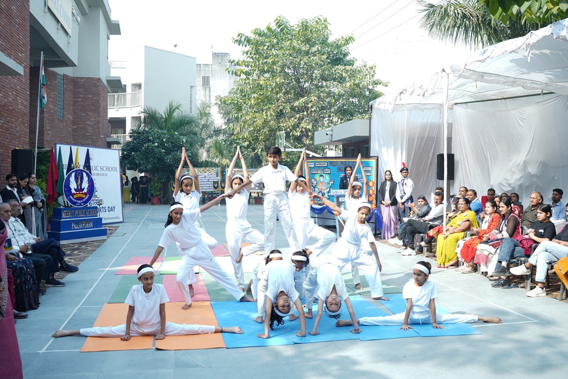 The celebration unfolded with a melodious welcome song presented by the school choir, followed by a March Past that exemplified discipline, coordination, and team spirit of the students. The spectators were then treated to an array of spectacular displays — including Yoga postures, Karate sequences, Skating demonstrations, Dumbbell Drill, and a Pyramid formation — each reflecting the students' skill, focus, and dedication.