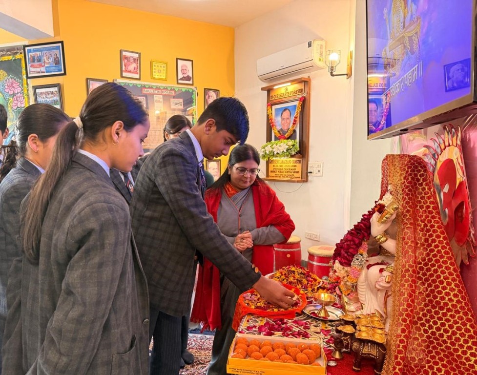 Addressing the gathering, Madam Principal, Mrs. Mukti Minocha, narrated the story of Vasant Panchami and encouraged students to value education, discipline, and cultural traditions. A Saraswati Maa Pujan was performed on the campus with the active participation of teachers and students.