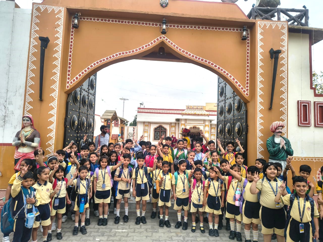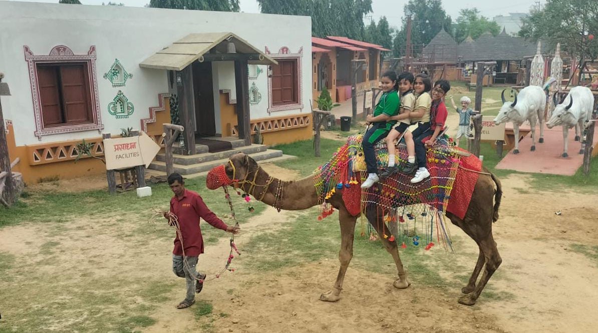 Students from Balvatika-I to Grade II visited Chokhi Dhani, Meerut.The visit provided a vibrant glimpse into traditional Rajasthani culture. The young learners enthusiastically participated in various fun-filled activities such as camel rides, puppet shows, folk dances, and enjoyed the traditional ambiance. The colorful surroundings and interactive experiences made the visit both enjoyable and enriching for the children.