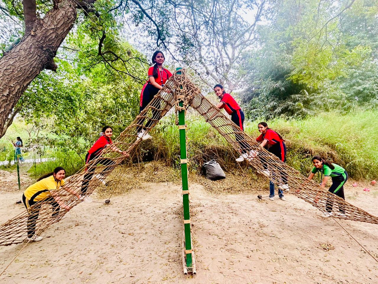 Students of Grades III to VIII visited Rocksport Jungle Trail, Noida, where they participated in adventure activities like rope challenges, obstacle courses, and team-building activities, developing confidence, leadership, and collaboration skills. An exhibition of animal sculptures made from recycled materials also promoted environmental awareness.