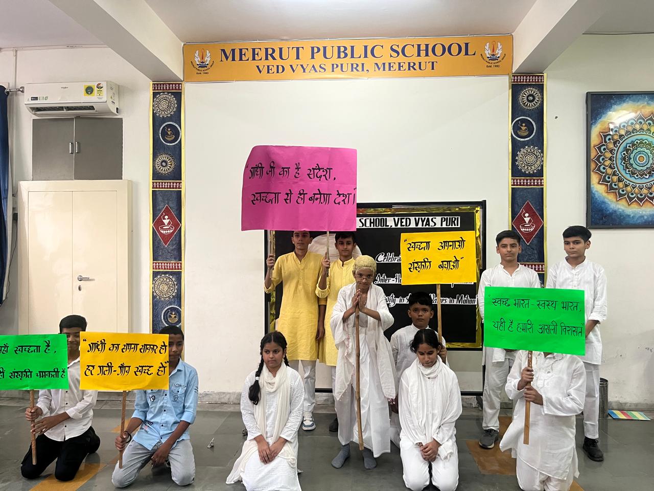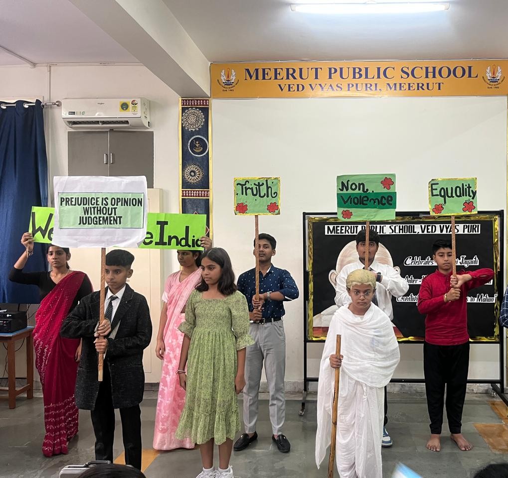 Meerut Public School, Ved Vyas Puri proudly hosted the Inter-House Tableau Competition on the occasion of Gandhi Jayanti, themed on the life and values of Mahatma Gandhi. The event was a vibrant celebration of the principles that Gandhiji lived by, brought to life through the creative efforts of our students.