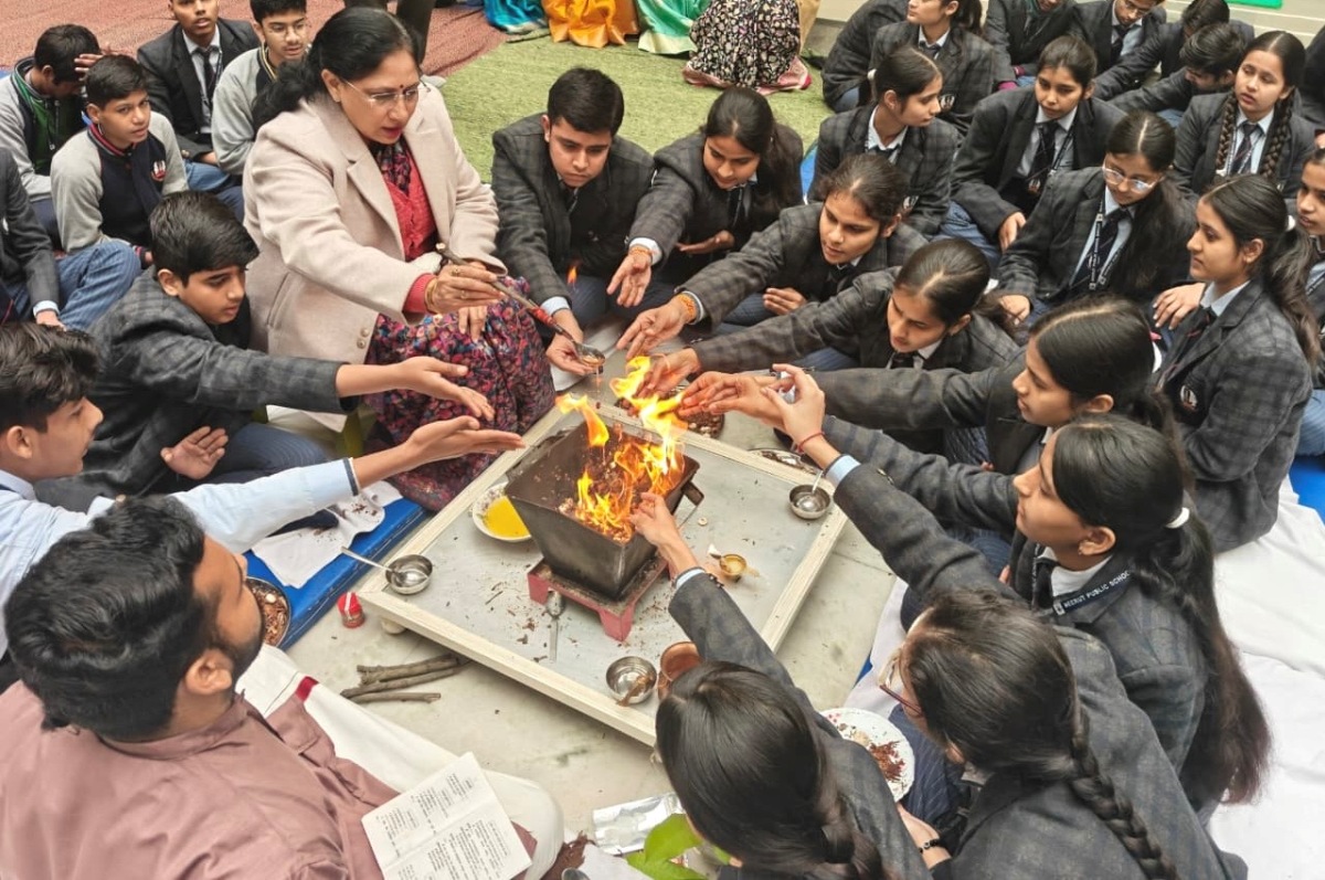 This was followed by a Hawan organised for the students of Classes XII and X, invoking the blessings of the Almighty for their success, well-being, and forthcoming Board Examinations. The sacred proceedings filled the atmosphere with serenity, positivity, and spiritual strength.