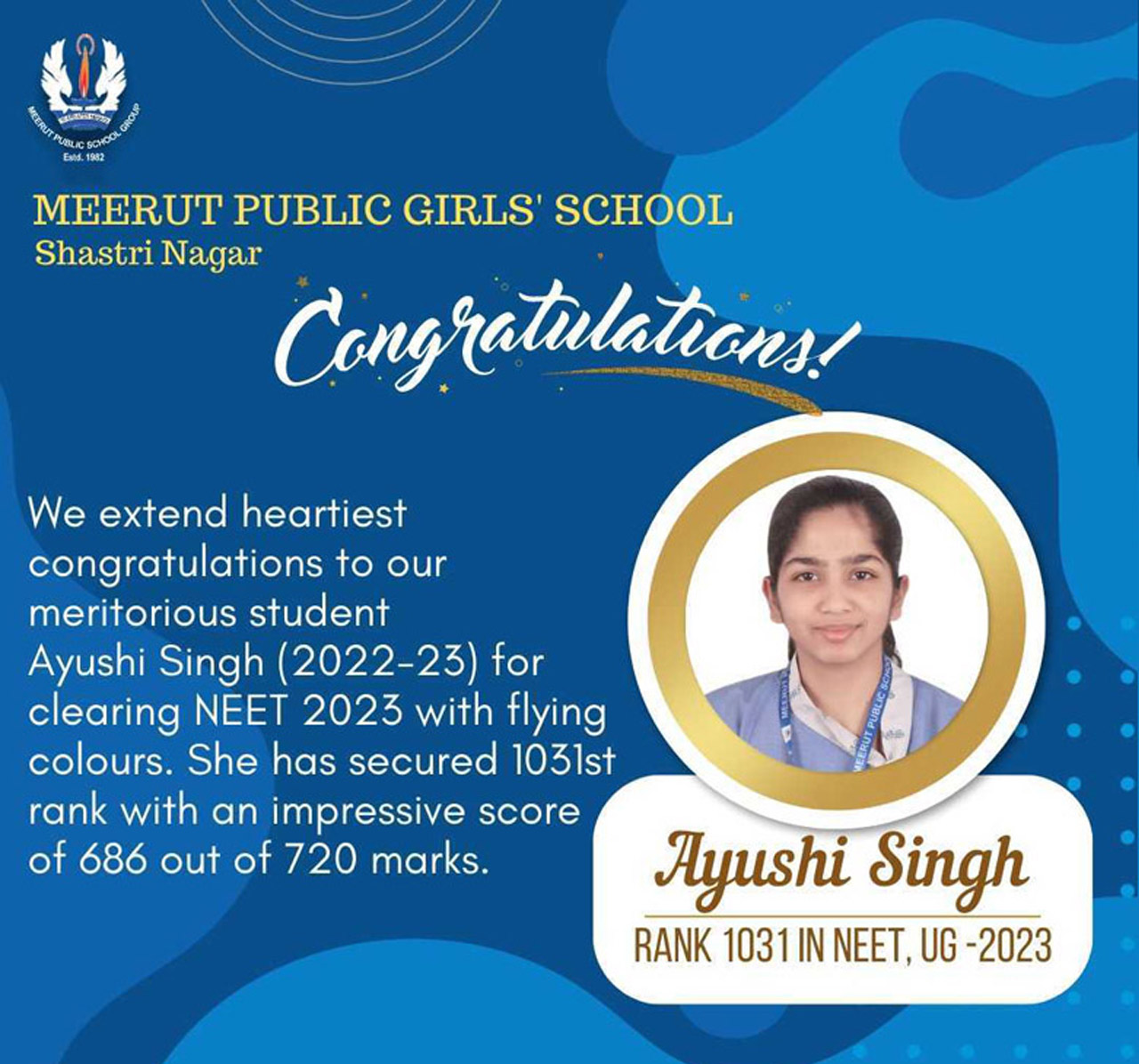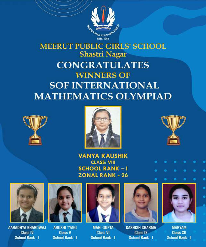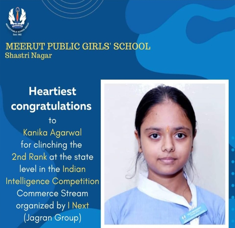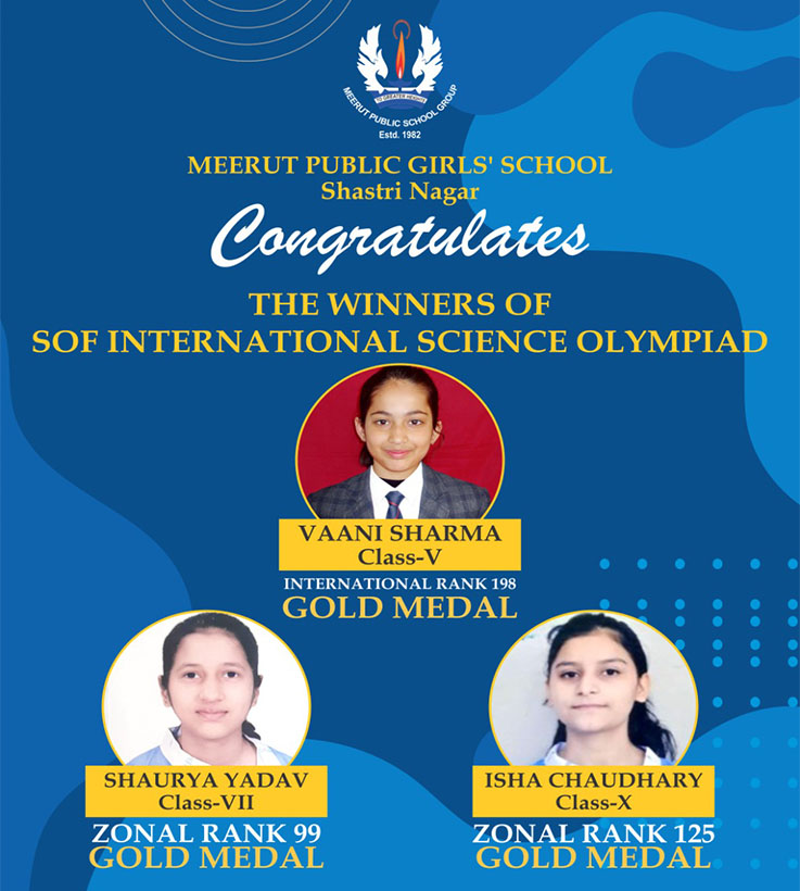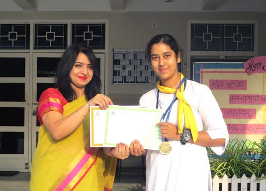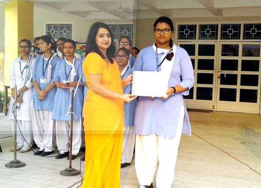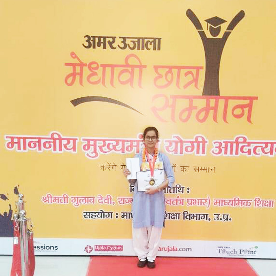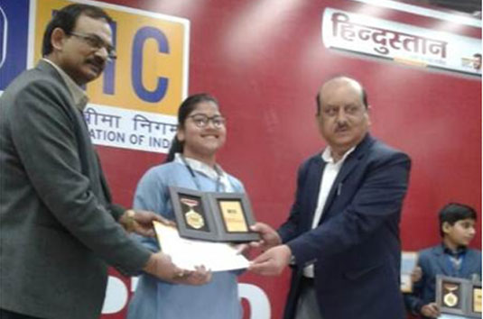 Mahak Gupta of XI A was declared the District Topper in Hindustan Olympiad for class 11 conducted by Hindustan Group. She was felicitated with a gold medal, cash prize of 2100/- along with a certificate.