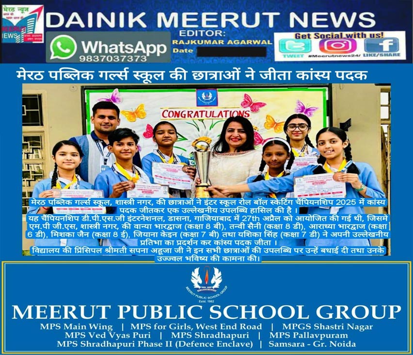 Gauri Sharma, Ishika Rastogi, Kritika Mishra, Chestha Singh and Jai Shree secured first position in Ad Zap promoting "Bestify Me App". Esha Mohan and Khushi Thakur also grabbed second position in Cyber Talk- Technology Isolates Us. These activities were organised under the Inter School Competition Cosma at St. Mary's Academy Meerut on 9 August 2019.