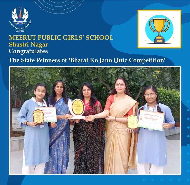 Ayushi of VII and Manasvi Attri of VIII stood second in "Bharat ko Jano" State level Competition held at Jhansi.