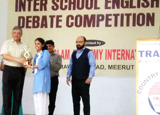 Pari Sharma of class XI grabbed Best Speaker Award along with a book gifted by Mr. A.K Gandhi, the writer, himself, in Inter School English Debate Competition held at Translam Academy International, Meerut.