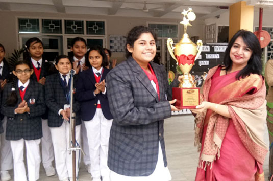 Chestha of class XI won First Position in Interschool Hindi Declamation Competition held at The Aryans, Meerut.