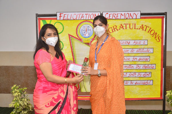 Shreya Dhama, the topper of AISSE 2019-2020 WAS also felicitated for her commendable performance. Ayushi Gupta , Avni Tyagi , Aayushi Singh , Deeksha Agarwal and Sanjeevani Gupta were also given cheques and certificates for being second and third toppers respectively .