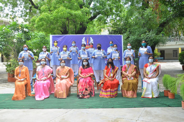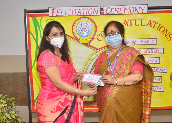 Following the same the Management felicitated their toppers of AISSCE and AISSE 2019 - 2020 giving them the cheques and the certificates under Lalita Dhawan Scholarships Scheme.