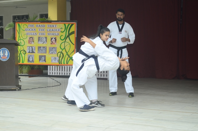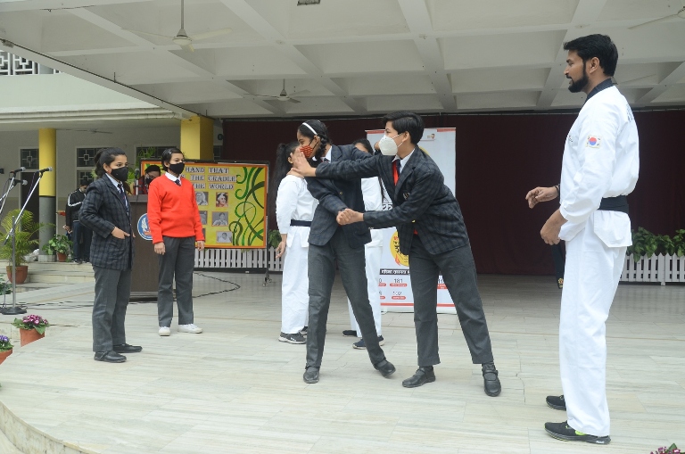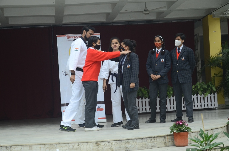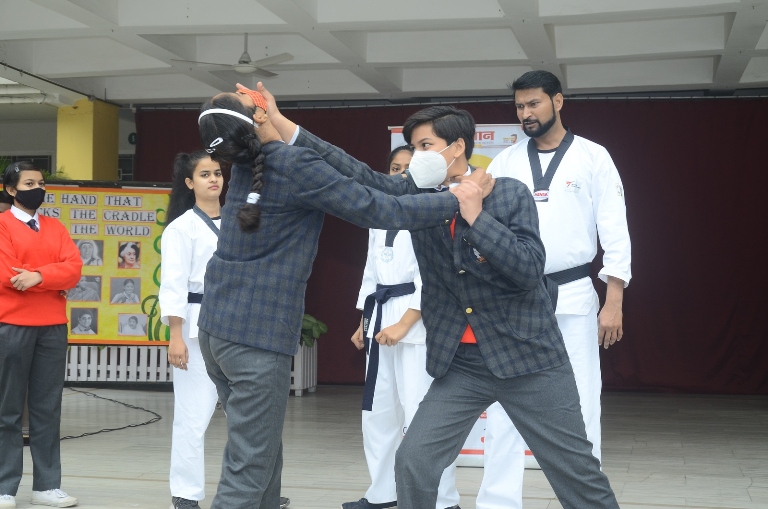 The programme began with the welcome song presented by the school choir. The motivational speeches of all the guests encouraged the students to raise their voice courageously against all the crimes and molestation. Mr. Ajay, Karate Coach gave a demonstration to impart the tactics of self defence.