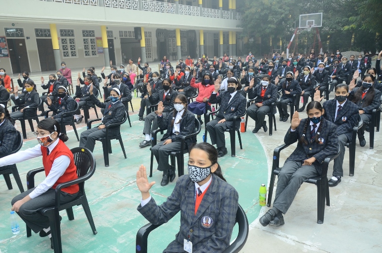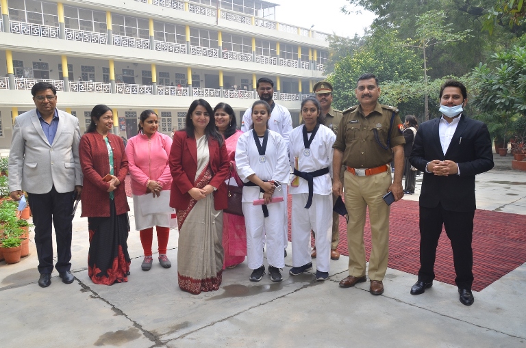 The dignitaries who graced the event were given a floral welcome by the Principal, Mrs. Sapna Ahuja. To witness and foster the event,  Dr. Akhilesh  Narayan Singh Ji, SP City, Meerut, Mr. Mahesh Kandwal Ji, Deputy Director, Rural and Backward Class Welfare and Nodel Officer of Mission Shakti, Dr. Manju Gupta, Professor, Meerut College, Mrs. Anjana Pandey and her team from Betiyan Foundation, Mr. Rakesh Priydarshi, City Incharge, Hindustan News,  Mrs. Neha Tyagi, Women Welfare Department, etc. were present there .