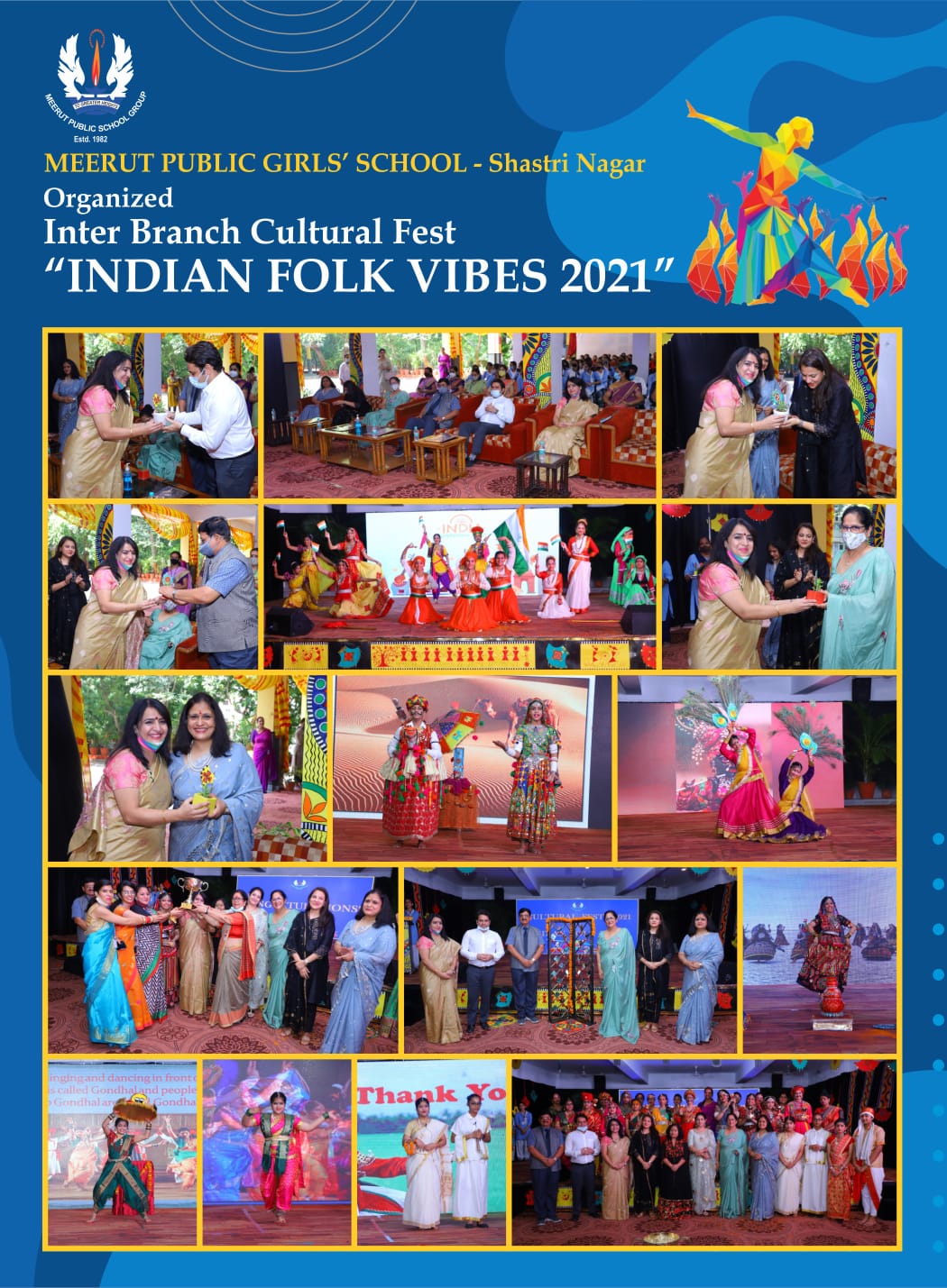 To nurture its students with the cultural lullabies of Mother India , MPGS Shastri Nagar hosted an Inter-Branch Cultural  Fest , Indian Folk Vibes . The event commenced with the  green welcome of the dignitaries_ the  venerable Chief Guest , Major General (VSM) ( VETERAN) A.K.Rekhi ,the Guest of Honour Mrs. Veena Rekhi ,    the reputed judges Mrs. Madhuri Mishra - a reputed choreographer  , Prof. Dr. Bhawana Grover Dua , a renowned Kathak dancer ,