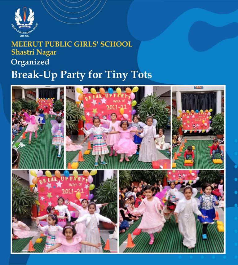 Today, THE FIRST STEP, MPGS, SHASTRI NAGAR, organised a " Break - Up  Party " for the students of kindergarten and class One. The students  and the teachers together recollected  the cherished moments spent in the school,  how during the learning process the students grown and developed into the better version of themselves, how the teachers laid down the foundation of the future of tiny tots, nurturing them emotionally and affectionately.