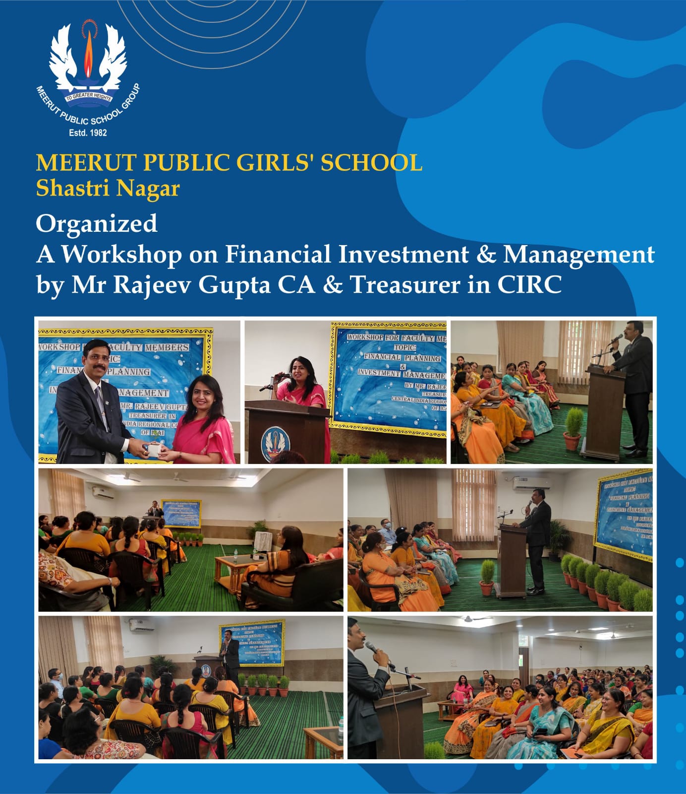 Meerut Public Girls' School Shastri Nagar organized a workshop for teachers on Financial Literacy and Investment Management on Thursday, 26 May 2022. The session aimed at providing the teachers with the confidence to take financial decisions. The purpose of the workshop was to educate the audience about concepts of investment, its benefits and the use of different tools of investments.  The session began with the green welcome of the the speaker, Chartered Accountant, Mr.Rajeev Gupta, Treasurer in CIRCA. He highlighted the importance of savings and investment planning. He explained the various tools of investment like fixed deposits, Post office schemes, insurance, PPF, NPAs mutual funds etc. Madam Principal Mrs. Sapna Ahuja expressed her gratitude to the spokesperson and motivated the staff members to make the best use of the information shared and invest their hard earned money for their future.