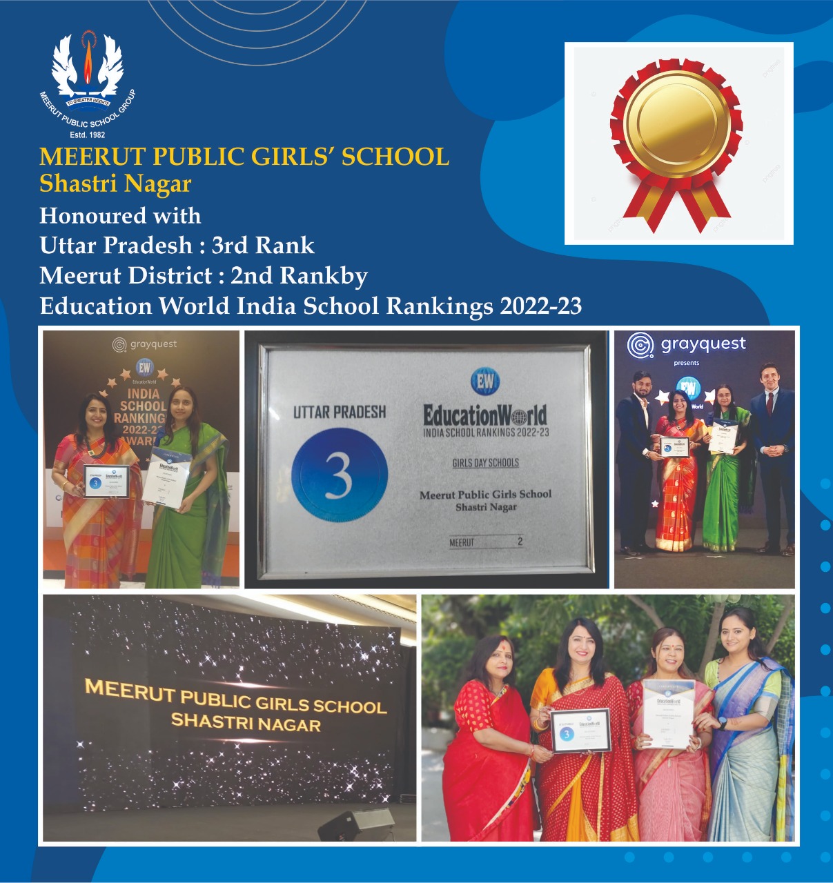 Meerut Public Girls School Shastri Nagar has been awarded as the third best school of Uttar Pradesh by Education World  India in the category of Best Girls School.