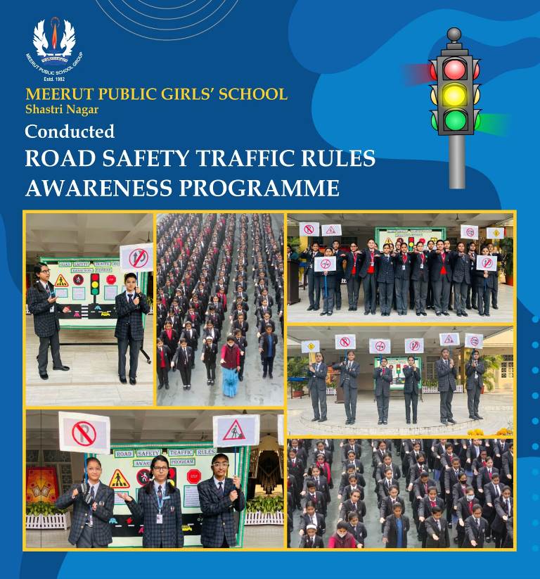 Meerut Public Girls'  School,  Shastri Nagar conducted Road Safety Traffic Rules Awareness Programme to sensitize all about their responsibility about it. The students were guided to stay cautious for their own as well as others' safety on road. They were instructed about the basic rules of road safety through a short presentation. A pledge was also administered to follow all the traffic rules sincerely to save the lives of all.