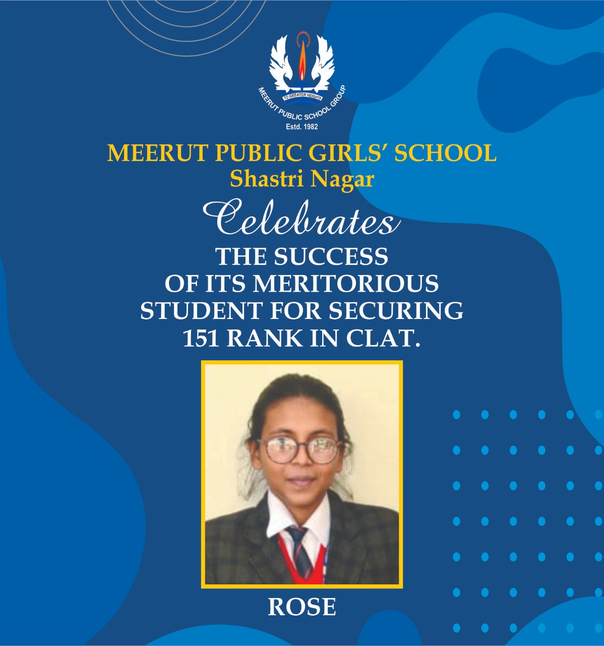 It is a proud moment for MPGS Shastri Nagar to share that its talented student Rose, Batch 2022-23 has cracked CLAT (Common Law Admission Test 2023), the most competitive entrance exam for law. She ranked 151 in all of India.