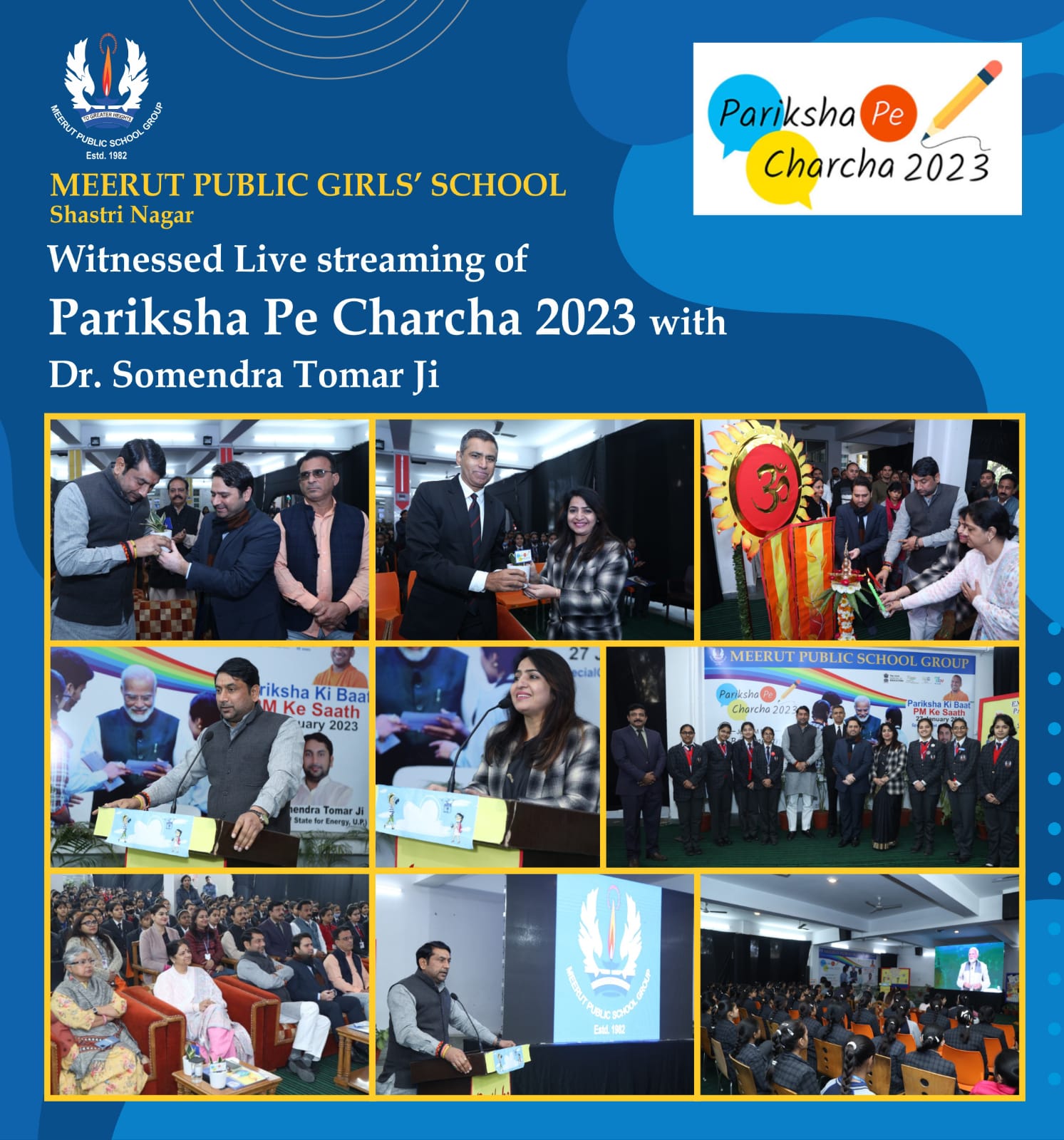 On the occasion of the live screening of Pariksha Pe Charcha 2023, the Chief Guest,  the Minister of  State for Energy in the UP Government Dr Somendra Tomar Ji, the Managing Director of MPS Group,  Shri Vikramjeet Singh Shastri Ji, Joint Director of MPS Group, Colonel Gyan Singh Tomar Ji and many other distinguished guests graced MPGS, Shastri Nagar with their benign and resplendent presence.