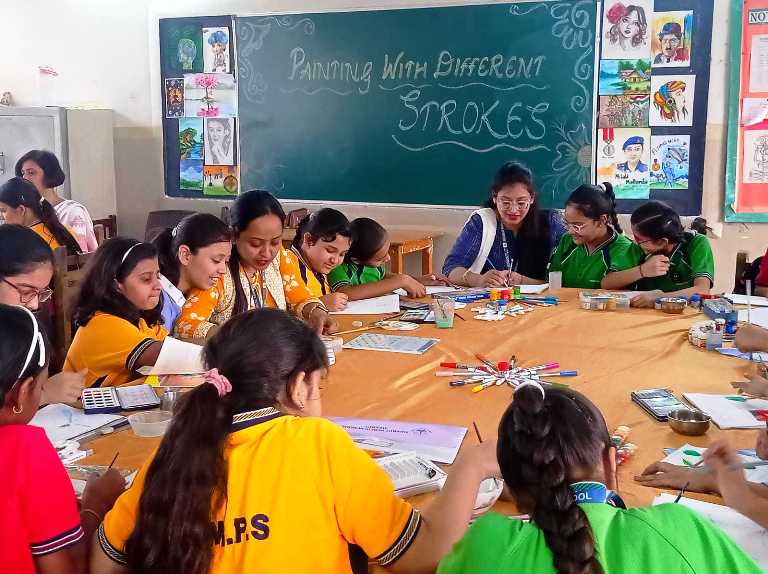 MPGS Shastri Nagar, Meerut organized a skill based 'Summer Camp' to add a sense of learning with fun. The camp kick-started on 17th May, 2023, marked by a ribbon-cutting ceremony led by Ms. Sapna Ahuja, Principal. The very first day was filled with joy as enthusiastic students participated in various skill based activities, including guitar and Casio playing, base stitch embroidery, freehand drawing and painting, basics of creating a PPT, Pranayam (Yoga and Meditation), Pranam (Bharatnatyam), and learned about gardening and got initial instructions to grow flora.