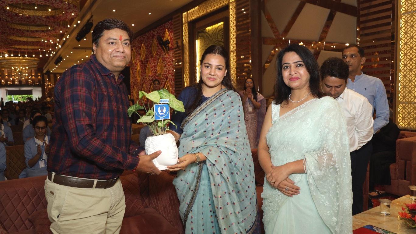 On this occasion, the Chief Guest Mr Piush Kumar Sharma and the Management felicitated the ALL INDIA RANK Holders - Insha Ansari (AIR 4) & Manasvi Sharma (AIR 2) and meritorious students of  AISSCE & AISSE 2022-23 under the Lalita Dahawan Scholarship. PWD students(Persons with Disability) were also felicitated and applauded for their outstanding academic results.