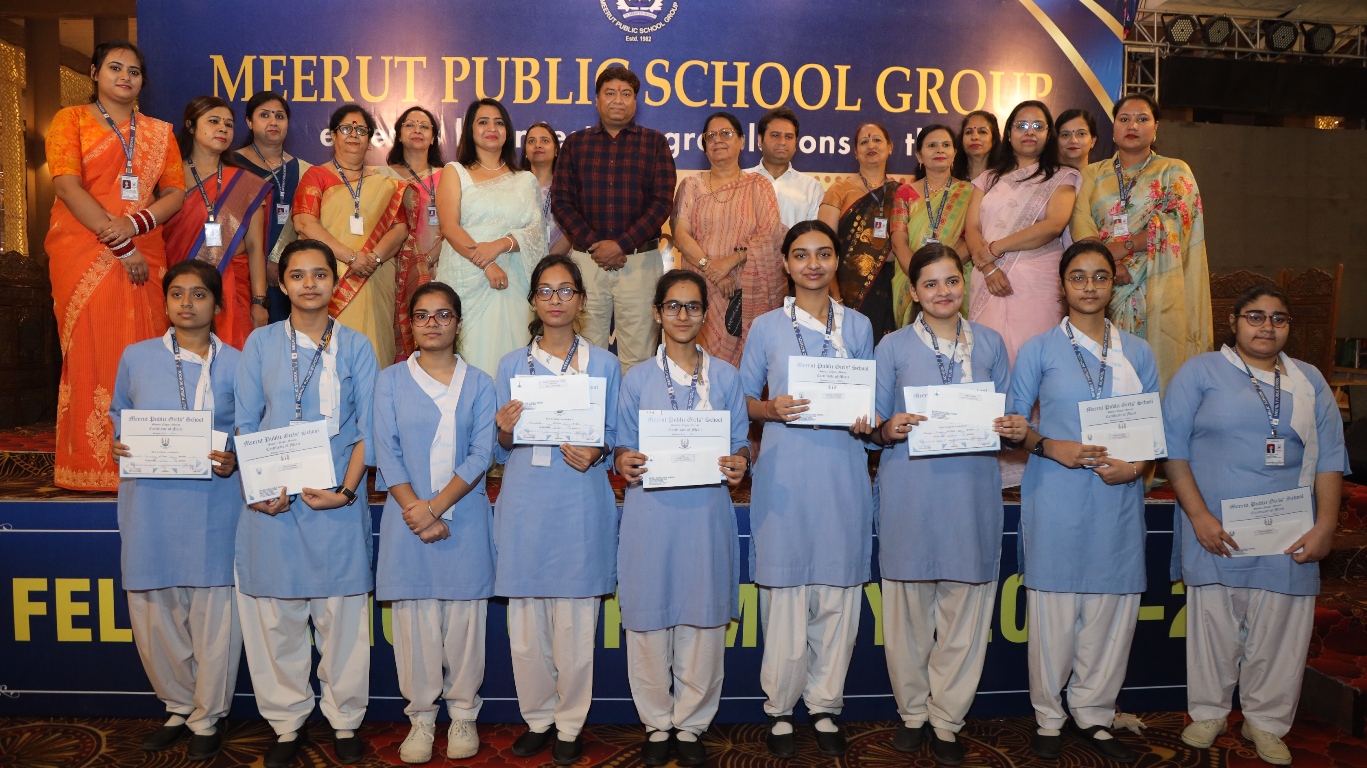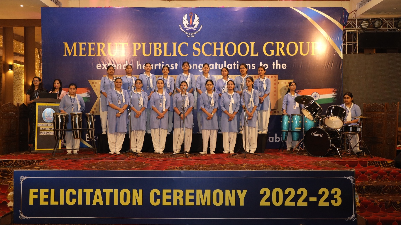 Meerut Public School  Group organized The Felicitation Ceremony to felicitate the meritorious students of AISSCE and AISSE 2022-23 and their teachers to acknowledge their hard work and accomplishments.