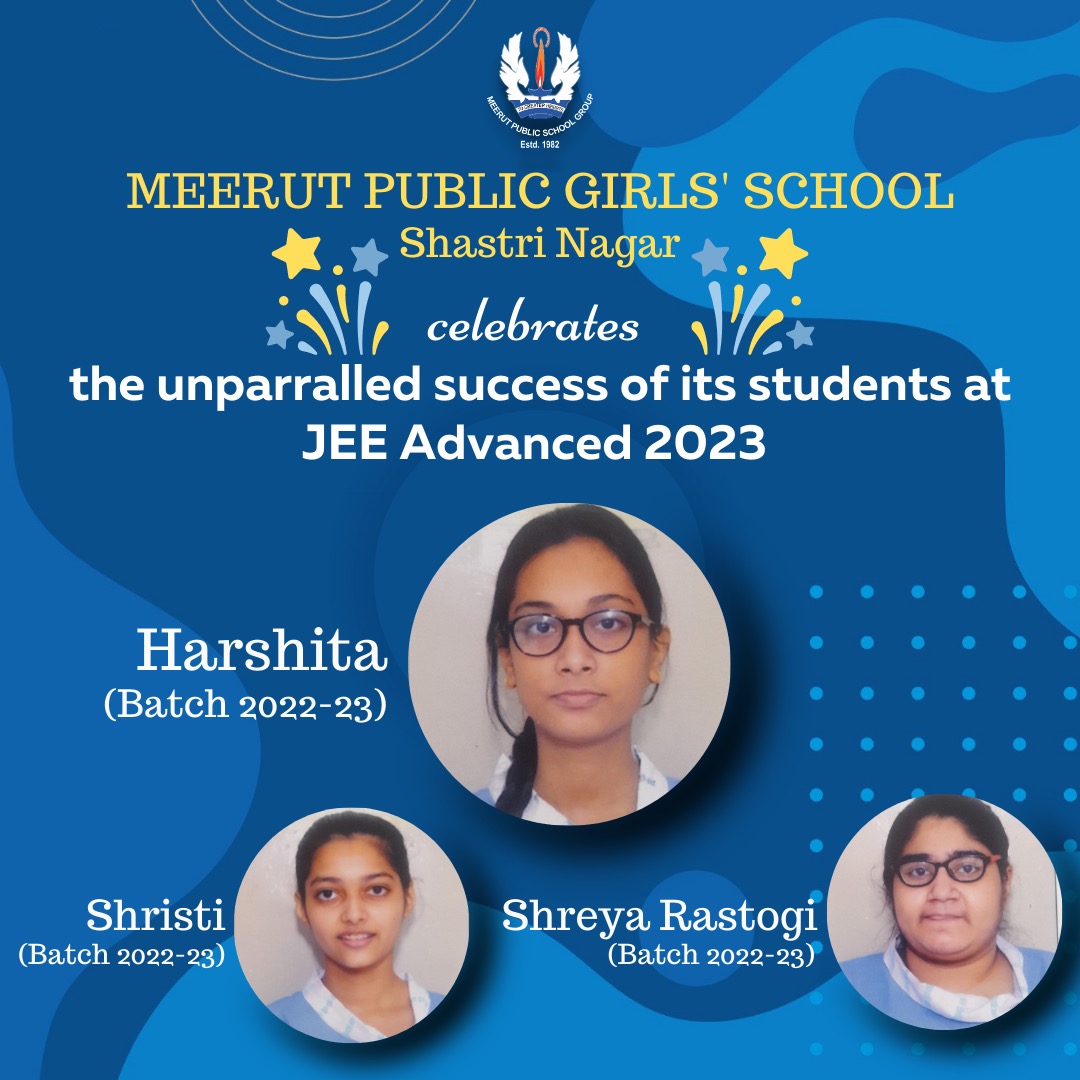 MPGS,SN exhilarates sharing one more great piece of news that its meritorious student Harshita Singh of the batch 2022-23 has accomplished unparalleled success in IIT JEE ADVANCED 2023 by securing a good rank . Shristi and Shreya Rastogi have also cleared JEE ADVANCED 2023.