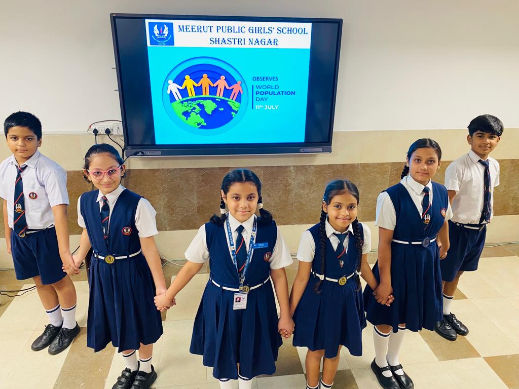 "Together let's build a world that respects & protects the rights and well- being of every individual. "On the occasion of “WORLD POPULATION DAY”, Meerut Public Girls' School, Shastri Nagar organised an informative session for the students wherein a presentation  was shown to the students of class 5 based on overpopulation, it's effects, causes and how to combat the issue. The primary objective of observing this day is to raise awareness to focus attention on the urgency and importance of population, gender equality, poverty, maternal health and human rights. A quiz was also conducted and the aim of sensitizing the students regarding the day was completely fulfilled and they participated in it with great zeal and excitement.