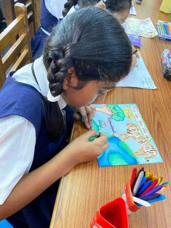 On the occasion of "INTERNATIONAL TIGER DAY" Meerut Public Girls' School, Shastri Nagar, organised a plethora of activities for the students where in students participated in poster and mask making activities. The students were also shown a documentary on the importance of the day. The primary objective of observing this day, which is celebrated annually on 29th July, was to make students aware of the dangers and problems faced by tigers around the globe. The cutting down of trees which causes loss of habitat, illegal trading and hunting are some of the prime factors behind the declining population of the tigers. The students also got to know the significant information that the current population of tigers in India is about 3167 as it is the outcome of Project Tiger that was launched in 1973 to promote conservation of tigers. The project has completed its 50 years. The collective efforts of the government, local authorities and conservationists has made India a paradise for the tigers because the country now has 75% of the world's tiger population. This commendable feat signifies how much India is concerned about the environmental issues of the world.
