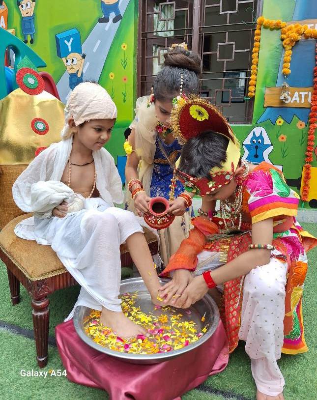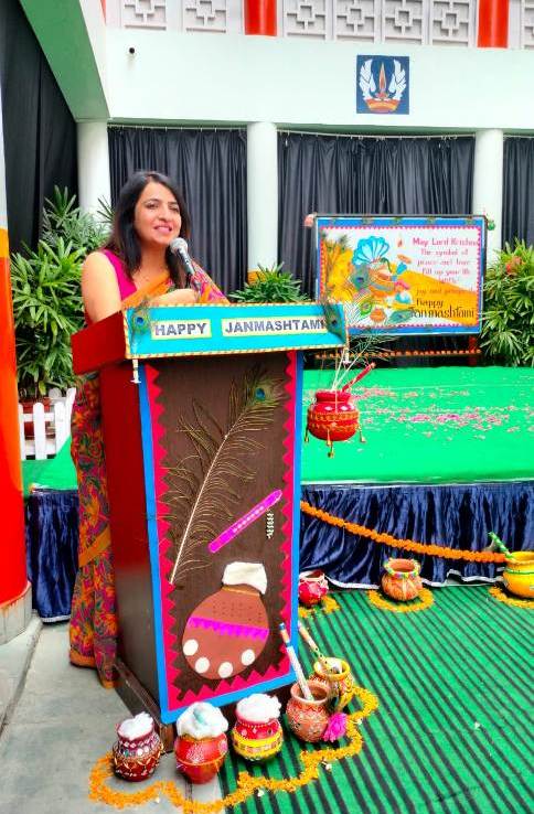Shri Krishna, the Creator and Saviour of the Universe, has various dimensions. His persona, His valuable teachings and His childhood feats captivate all. The First Step, MPGS, Shastri Nagar celebrated the auspicious occasion of Krishna Janmashtami with great enthusiasm. The tiny tots dressed up as Radha Krishna mesmerized everyone. The glimpses of Krishna's life like Krishna - Sudama, Vasudev carrying Krishna, Raas, Makhan Chori etc. were brought alive by students beautifully. Madam Principal, Ms Sapna Ahuja appreciated their presentation and motivated them to follow the teachings of Krishna to lead a life full of happiness and bliss.