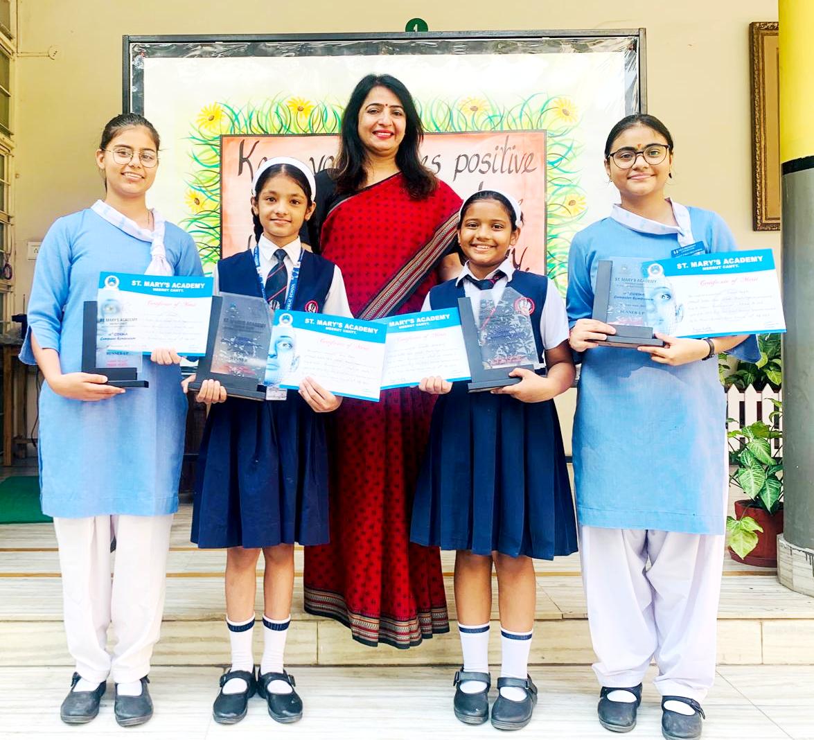 The students of Meerut Public Girls' School, Shastri Nagar participated in the 16th Cosma Computer Symposium an Inter School Competition organized by St. Mary's Academy, Meerut on 20 September 2023 and brought laurels. Garvita and Isra of the Primary Section secured the first position in the E-Waste Competition- "What A Cash ". Charvi, Pragya and Jiya secured the Runner-Up Prize in "Chase to Cut (Music Video) by making a video on the song "It ain't me". Madam Principal Mrs Sapna Ahuja appreciated and congratulated the winners and encouraged all the students to participate in such activities.