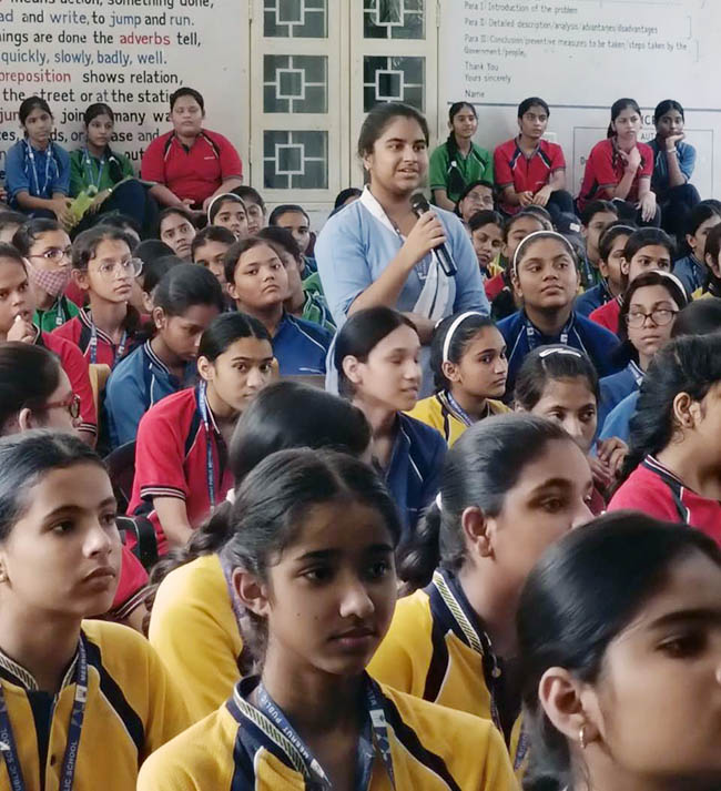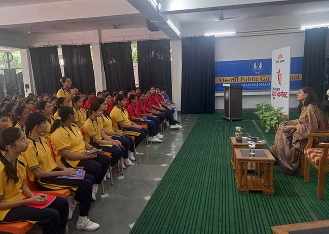 Dainik Jagran conducted an interactive and motivational session Jagran Youth Connect Programme in Meerut Public Girls' School Shastri Nagar for the students of the classes 9 & 11. The session commenced with the green welcome of the Chief Guest IAS Gamini Singla who secured AIR 3 in UPSC Examination 2022 and the other dignitaries by Madam Principal Mrs. Sapna Ahuja. Further on the Chief Guest addressed the students guiding them how to tackle the hurdles in academics and in pursuing the dream career. She suggested making conscious choices and working upon them consistently to achieve their goals. Students thoroughly enjoyed the session. The session culminated with the vote of thanks proposed by the Senior Coordinator Ms. Chandni Sahni.