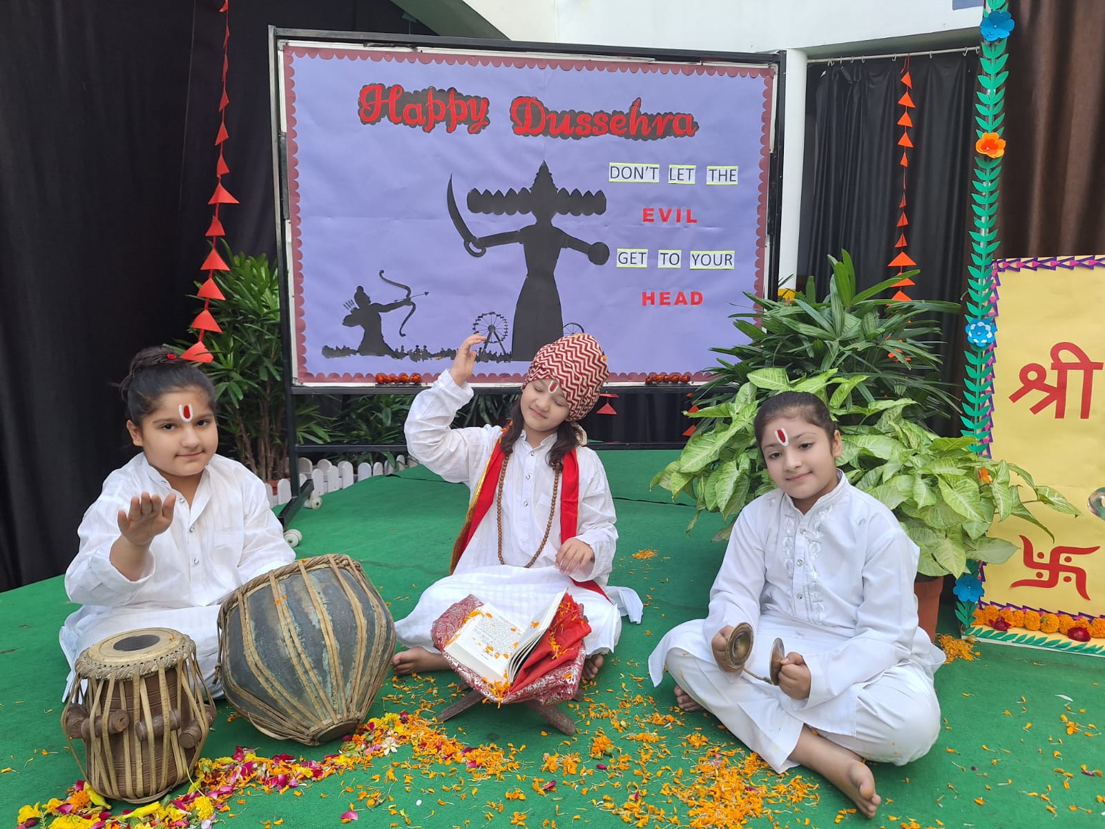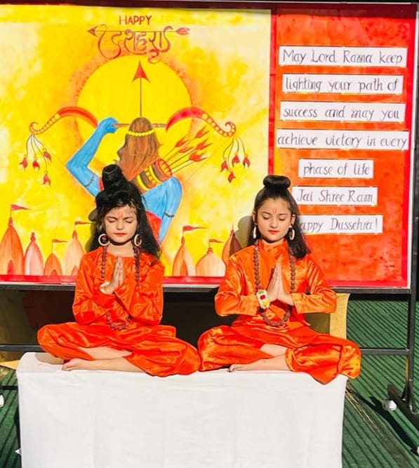 Dussehra is the symbol of the victory of good over evil and indeed an occasion for students to imbibe truthfulness, politeness, honesty, dedication, devotion to the work etc. to transform them into good human beings. MPGS Shastri Nagar organized a special assembly for the same. The celebration commenced with the recital of a Hymn followed by the musical depiction of the glimpses of the Ramayan. The melodious recital filled the premises with positive vibes mesmerising everyone. Indeed the indomitable spirit to fight against evil, compassion, love, affection, care can prevail peace and harmony in the world. Madam Principal Mrs Sapna Ahuja conveyed the message to overcome arrogance, ego, stubbornness to grow as a good human being.