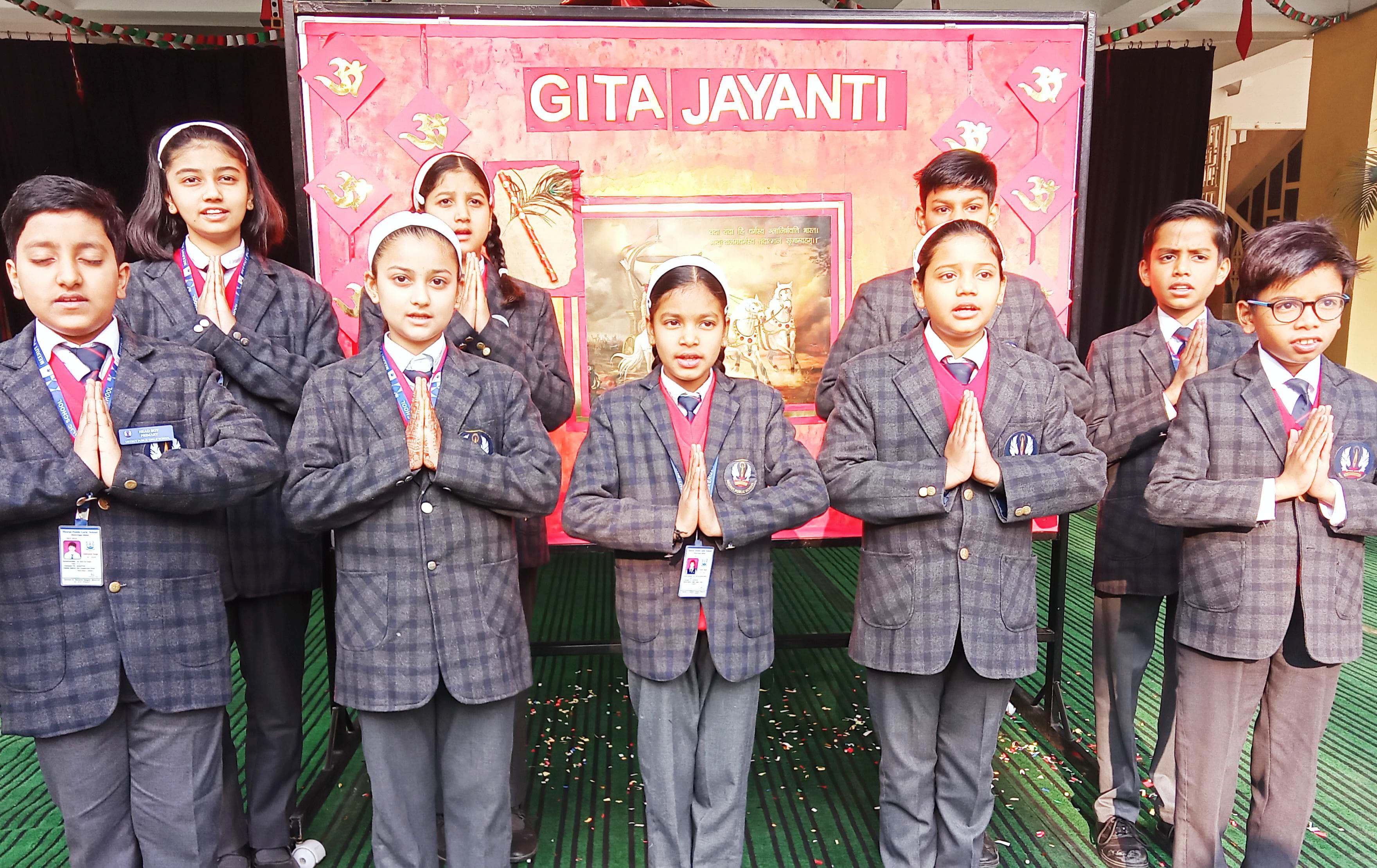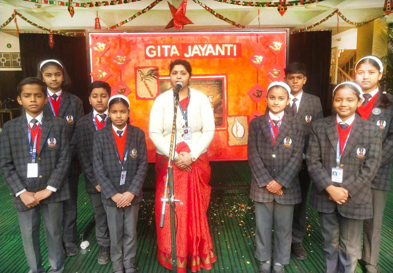 On 22nd December 2023, Meerut Public Girls' School, Shastri Nagar, celebrated Gita Jayanti. The event commenced with a profound and enlightening Geeta Jayanti speech by a student, followed by shloka recitation by one of the teachers. She emphasized the timeless wisdom found in the Bhagavad Gita, inspiring students to cultivate values and virtues in their lives. The speech served as a reminder of the importance of moral and ethical principles.  Madam Principal addressed the gathering, emphasizing the significance of cultural values.