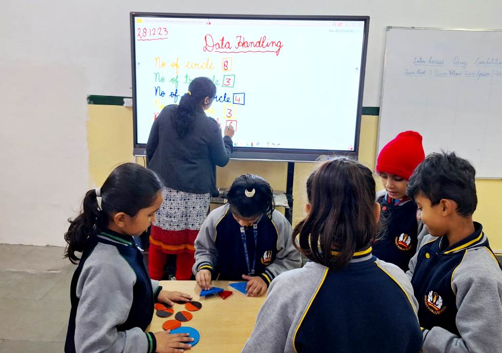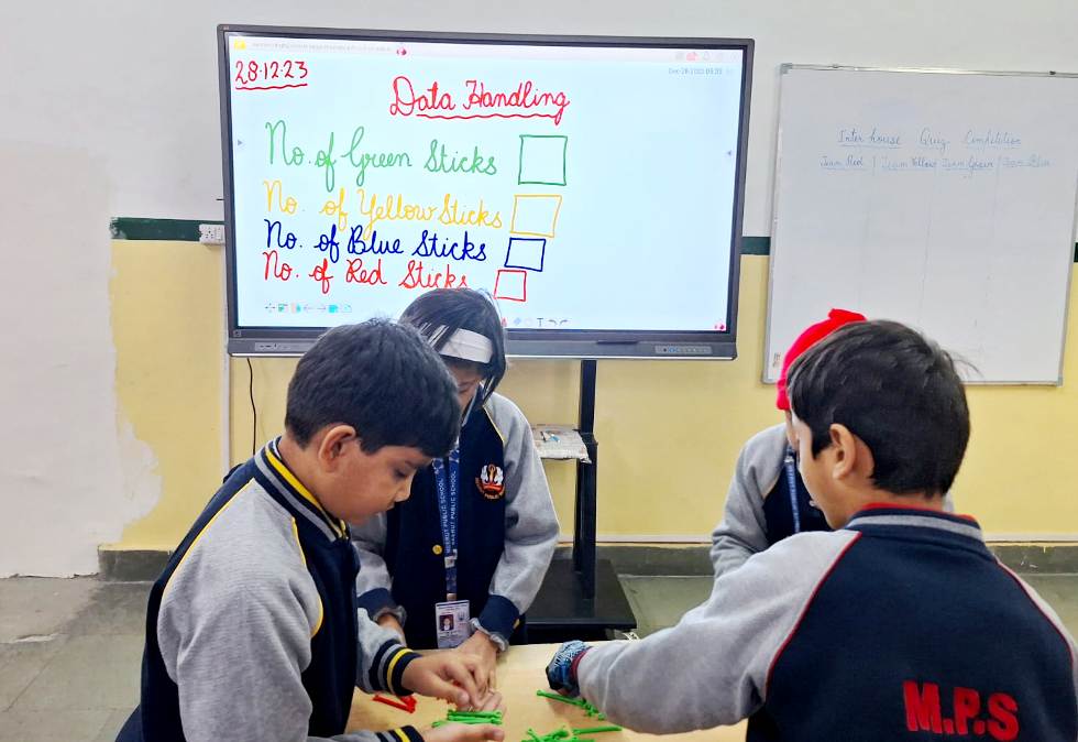 The tiny Kindergarten students of THE FIRST STEP, MPGS were introduced to the concept of data handling(numerals )through interactive smart board lessons and real-life tools. This teaching method enabled them to understand, recognize, and relate numbers as data. By developing the ability to collect, organize, and interpret data, these young minds were seasoned with an essential skill in mathematics and everyday life.