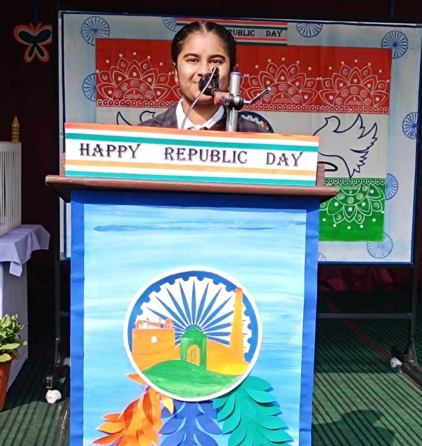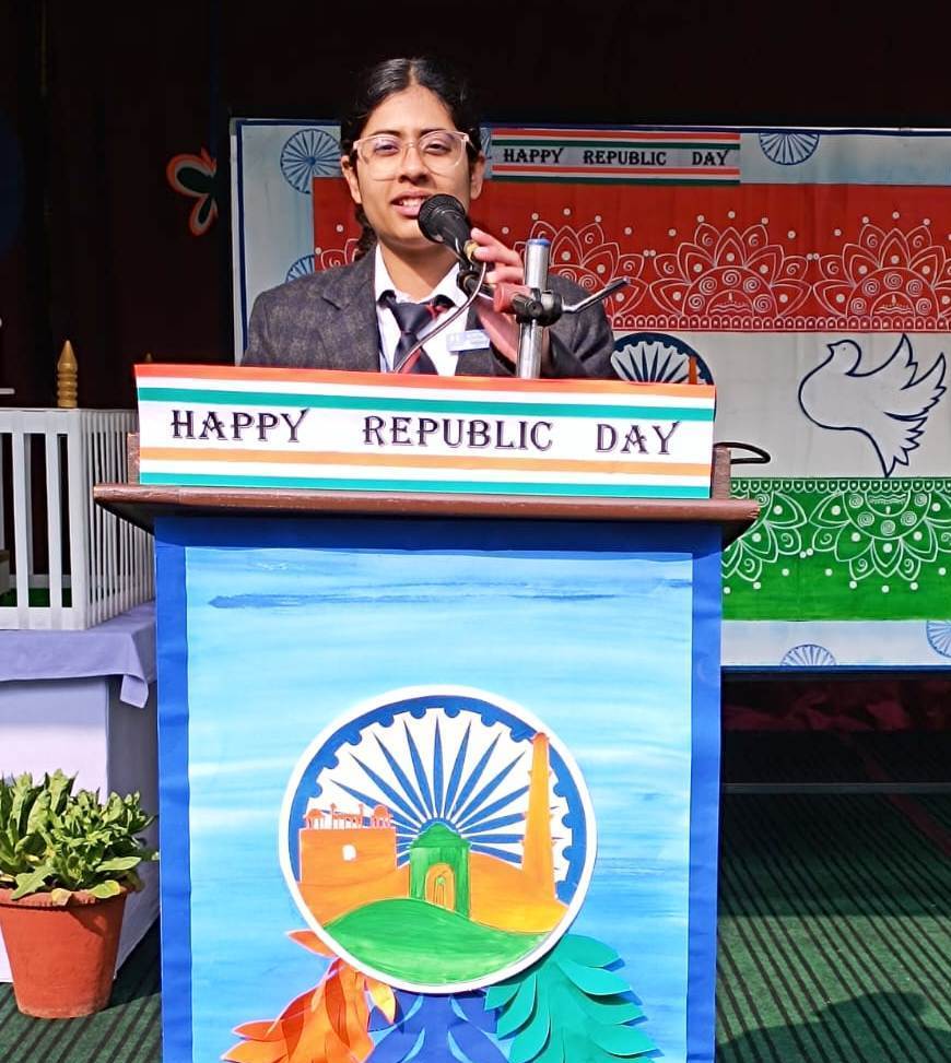 Today Bharat 's journey as a sovereign and democratic country has entered its "AmritKaal " by celebrating its 75th Republic Day . Meerut Public Girls' School Shastri Nagar celebrated the day with great fervour and enthusiasm highlighting the theme of the day "Bharat - The Mother of Democracy" . The celebration commenced with the speech of the Head Girl showcasing the key features of this red letter day. The Tricolour was unfurled by the Head Girl KuhuGuni and the Vice Head Girl Kashish Sharma followed with the soulful rendition of the National Anthem and the patriotic songs by the school choir. Addressing the students, Madam Principal Mrs SapnaAhuja motivated the students and the staff to work relentlessly for national integrity, sovereignty and the democratic values by performing their duties with utmost dedication and sincerity. The event culminated with the sweet distribution as the gesture of joy and festivity .May Bharat always soar to the zenith of progress and prosperity!