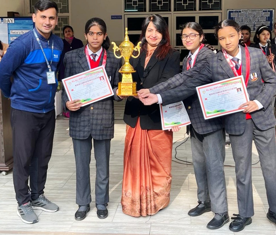 Vaanya Bhardwaj from 6th C, Tanvi Saini from 6th D, and Manya Verma from 7th E showcased exceptional talent by clinching a Bronze Medal and a Trophy in the 16th Sub-Junior under 14 Roll Ball State Championship held in Agra. Their outstanding performance in the competition is a testament to their dedication and prowess in the sport, bringing honour not only to themselves but also to their respective grades and the school as a whole. Congratulations to the young athletes on their well-deserved success !