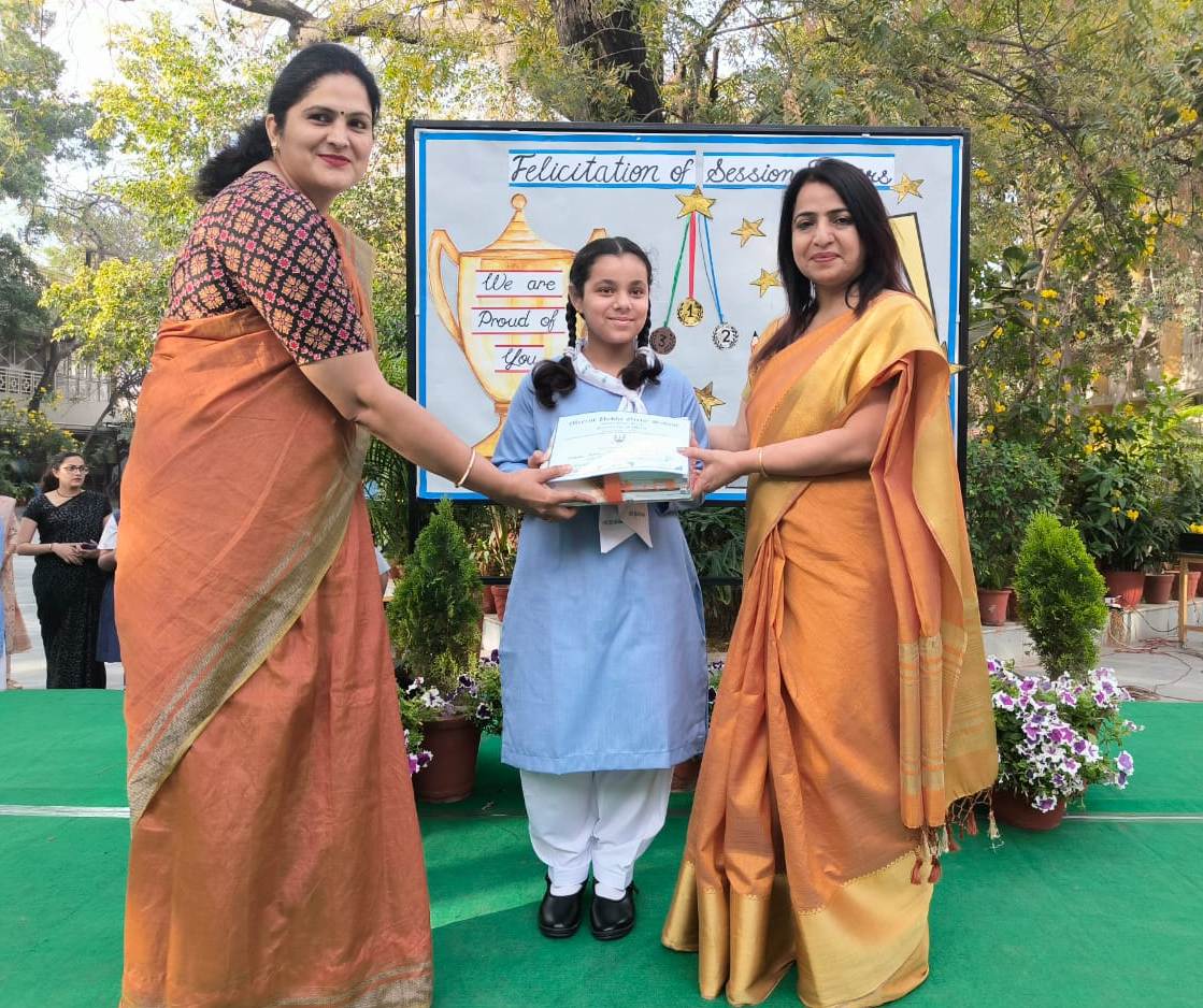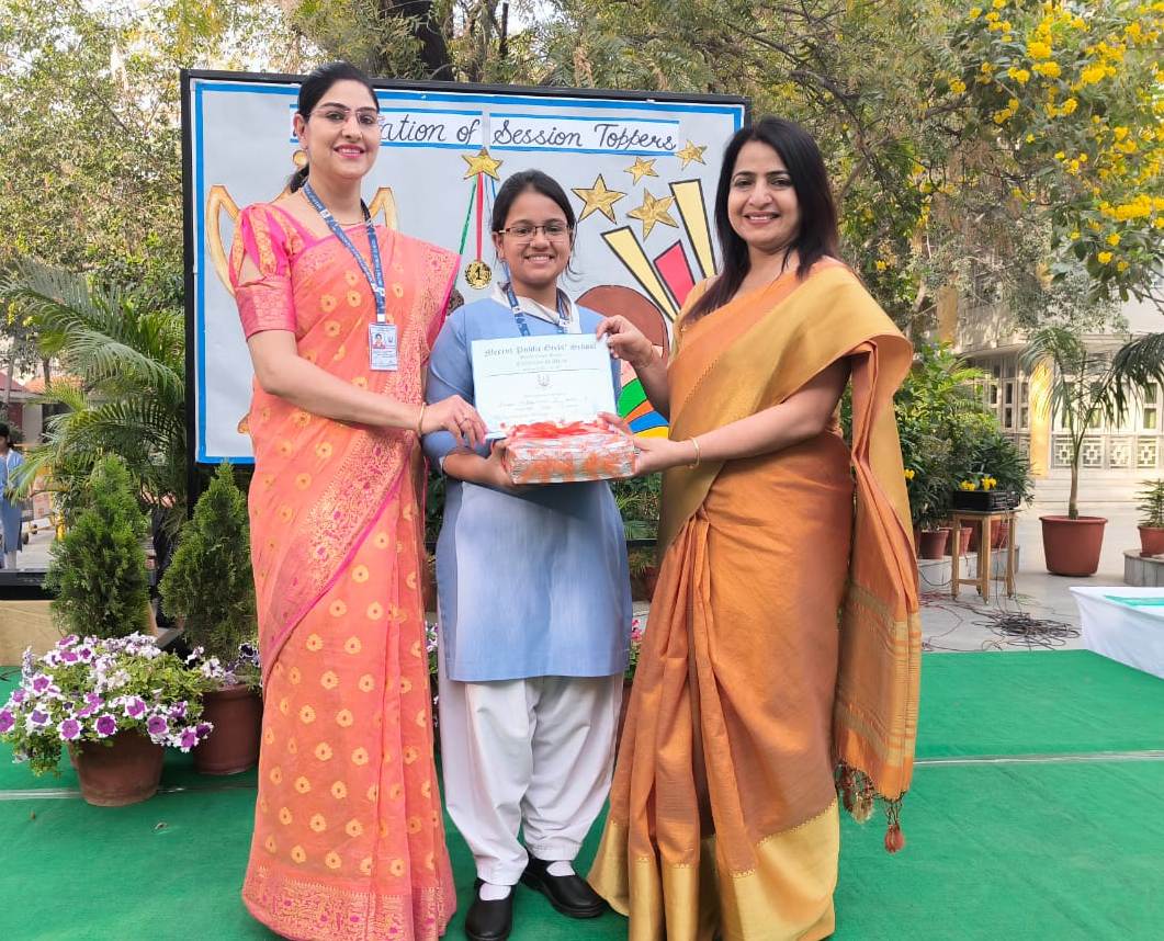 Success is the reward of persistence, dedication and determination to achieve excellence . Meerut Public Girls' School Shastri Nagar organized Felicitation Ceremony to acknowledge and honour the academic achievements of the toppers of the Academic Session 2023-24 Madam Principal Mrs.Sapna Ahuja applauded all the toppers by awarding them the Certificates of Merit and the set of books .
