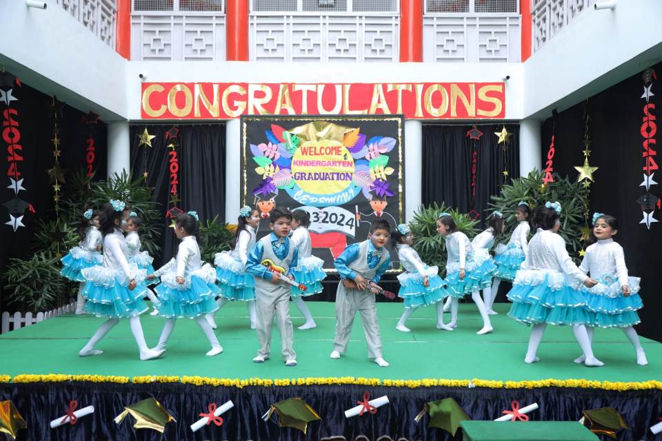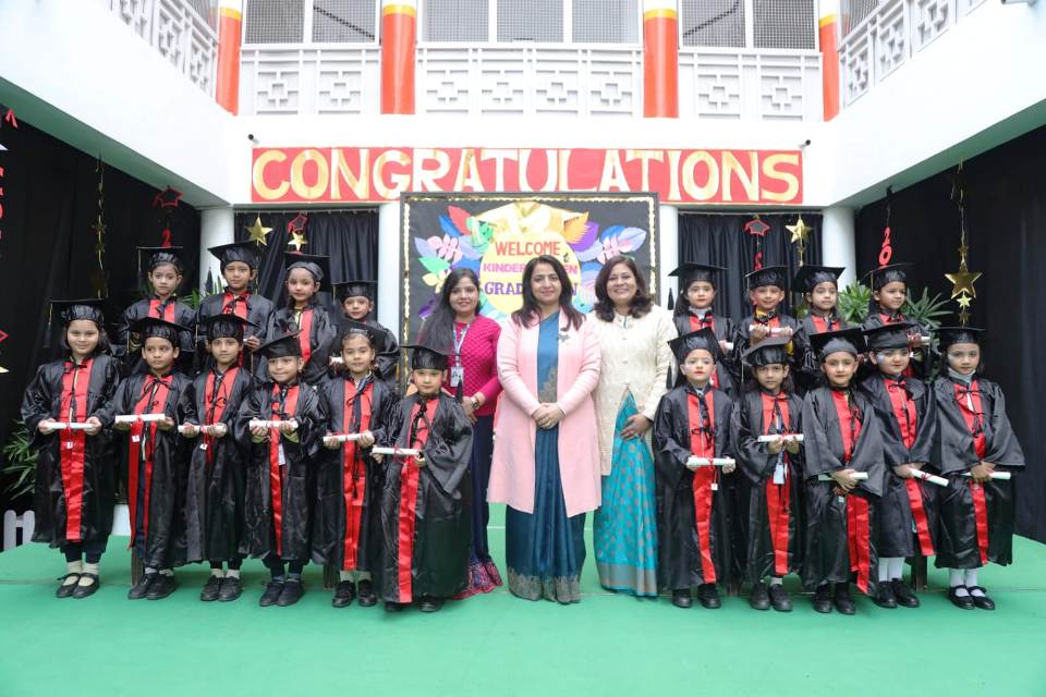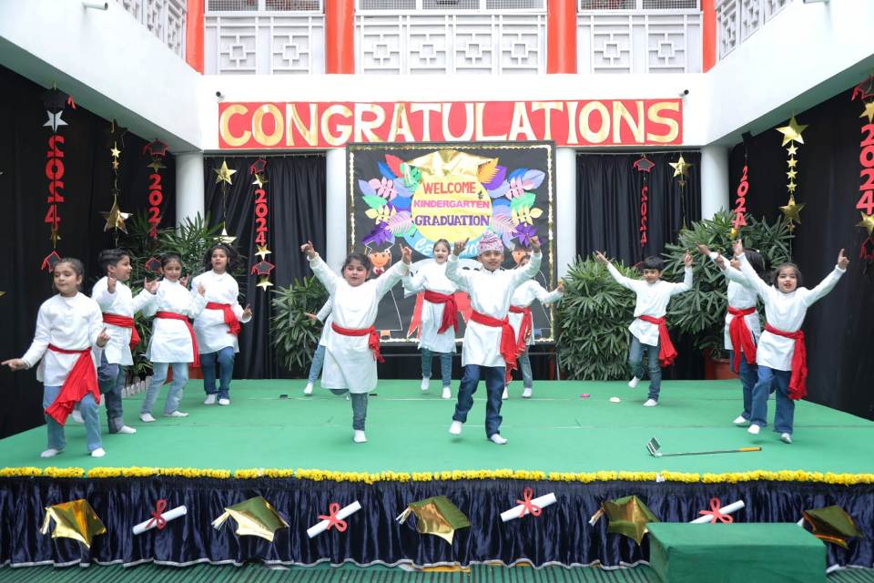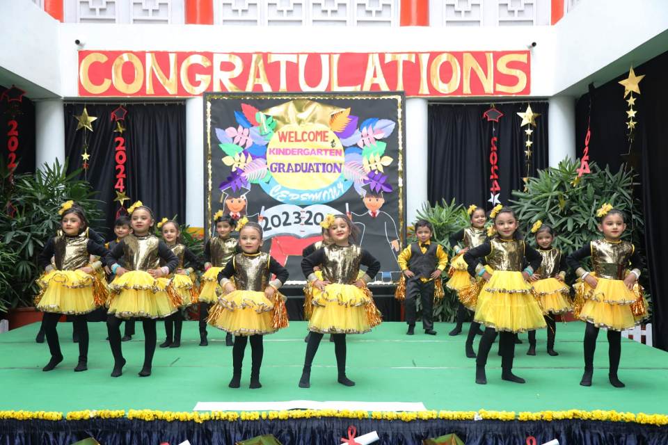 The First Step , Meerut Public Girls' School Shastri Nagar celebrated the Graduation Ceremony. The celebration commenced with the lighting of the holy lamp followed by a plethora of cultural activities. Preesha Gupta of Nursery presented " Guru Vandana" . The mesmerizing dance performance and the enactment of the Street Play spell bound everyone. The students of UKG filled the ambience with the warmth extending their gratitude to their teachers for their unwavering support and contribution for moulding their personalities. Madam Principal Mrs Sapna Ahuja conferred them with the certificates and blessed them to move ahead on the path of learning and success. The benign presence of the parents boosted up the children. The event culminated with the vote of thanks proposed by the Kindergarten Coordinator Mrs . YuktiGahlot.