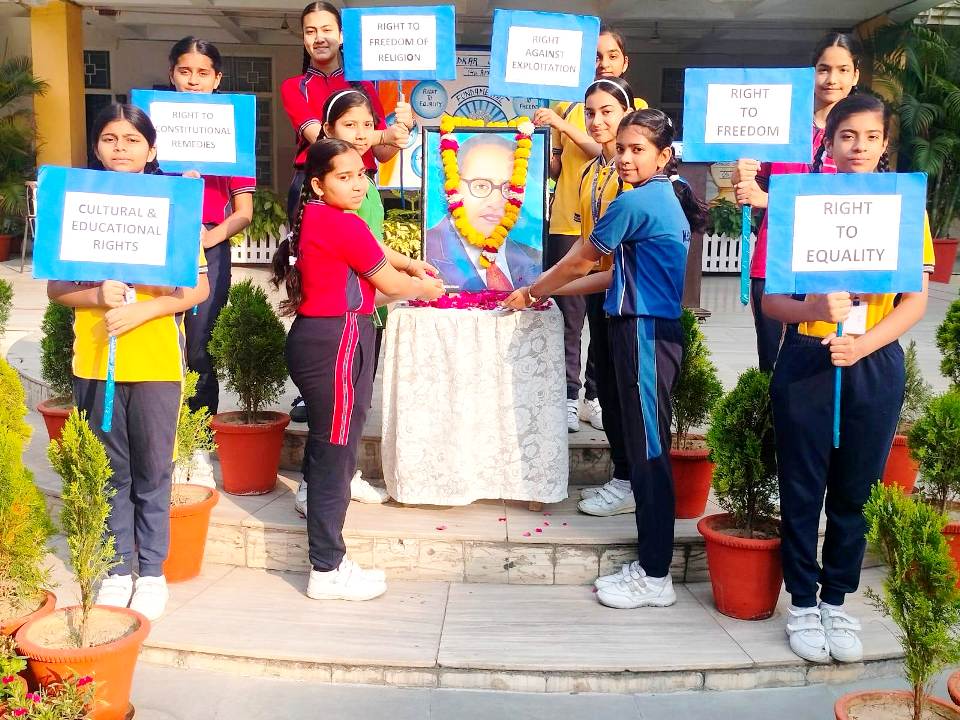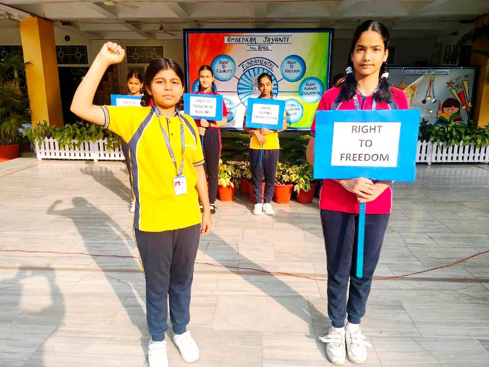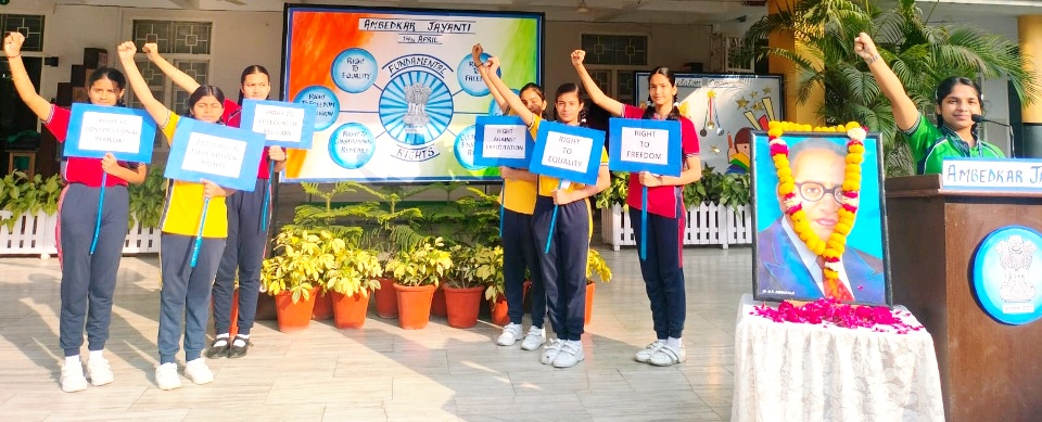 Such a great man was Dr Bhim Rao Ambedkar, whose birth anniversary was celebrated at MPGS, SN Meerut on 13 April, 2024. The students of class VIII of the Middle Section conducted a special assembly to commemorate the great and outstanding contribution of Babasaheb in drafting the Indian Constitution. The students conveyed the fundamental rights and duties through placards and explained them to everyone. The program concluded with the words of Principal Ma'am, Mrs. Sapna Ahuja , who inspired the students to have Baba Sahibh's insight into their lives.