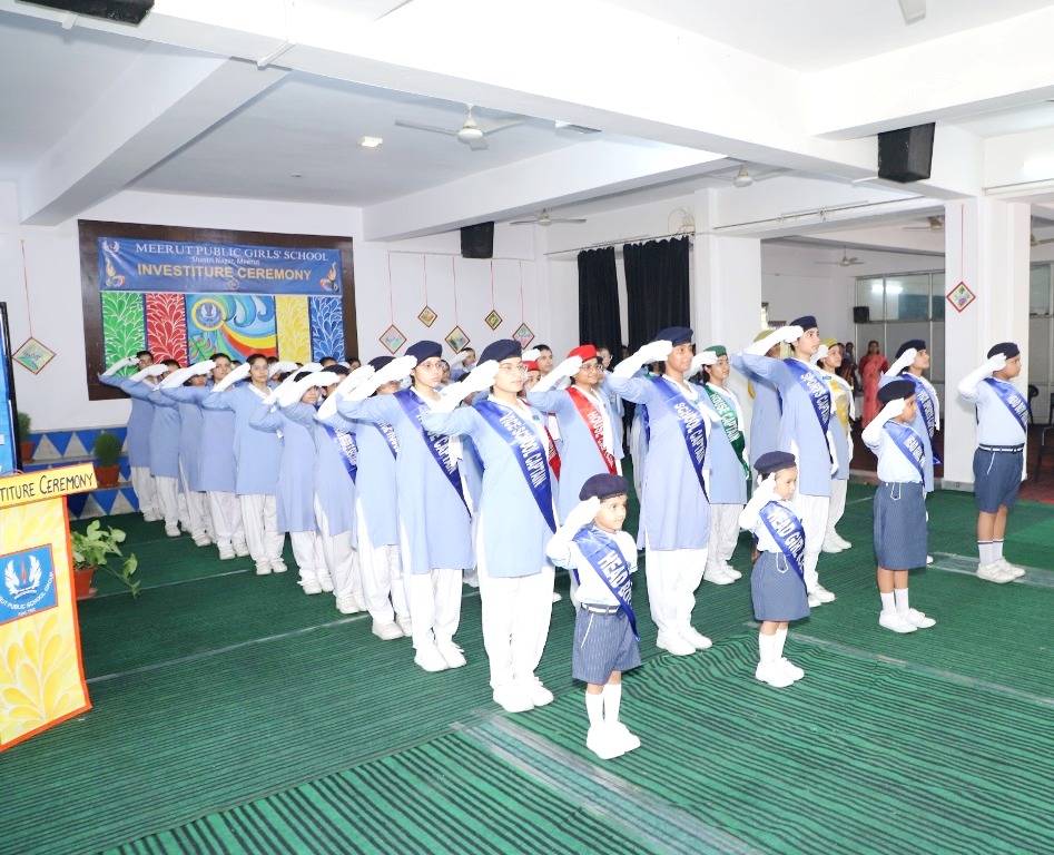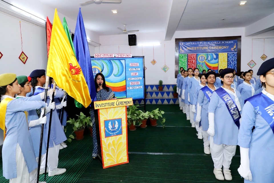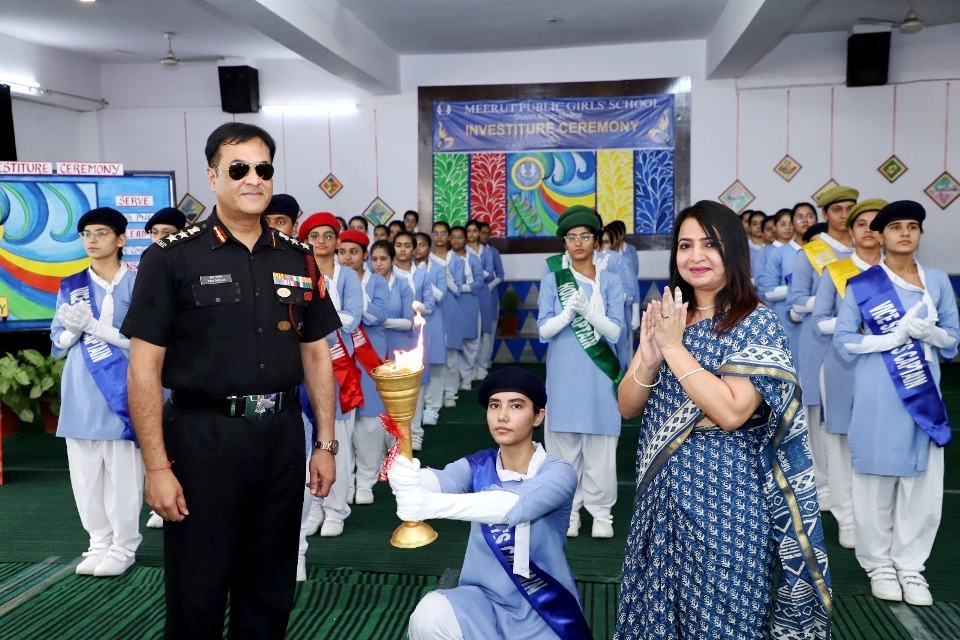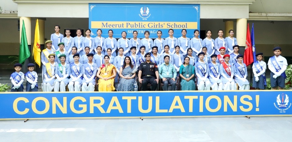 True leaders don't create followers...they create more leaders! .... And the Investiture Ceremony is a platform to showcase the leadership skills and abilities of the students boosting up their morale to grow as the responsible citizens. For the same, Meerut Public Girls' School Shastri Nagar organized the Investiture Ceremony. The event commenced with the green welcome of the Chief Guest Col. Rishi Dhillon ,VSM followed by the lighting of the lamp and melodious welcome song.